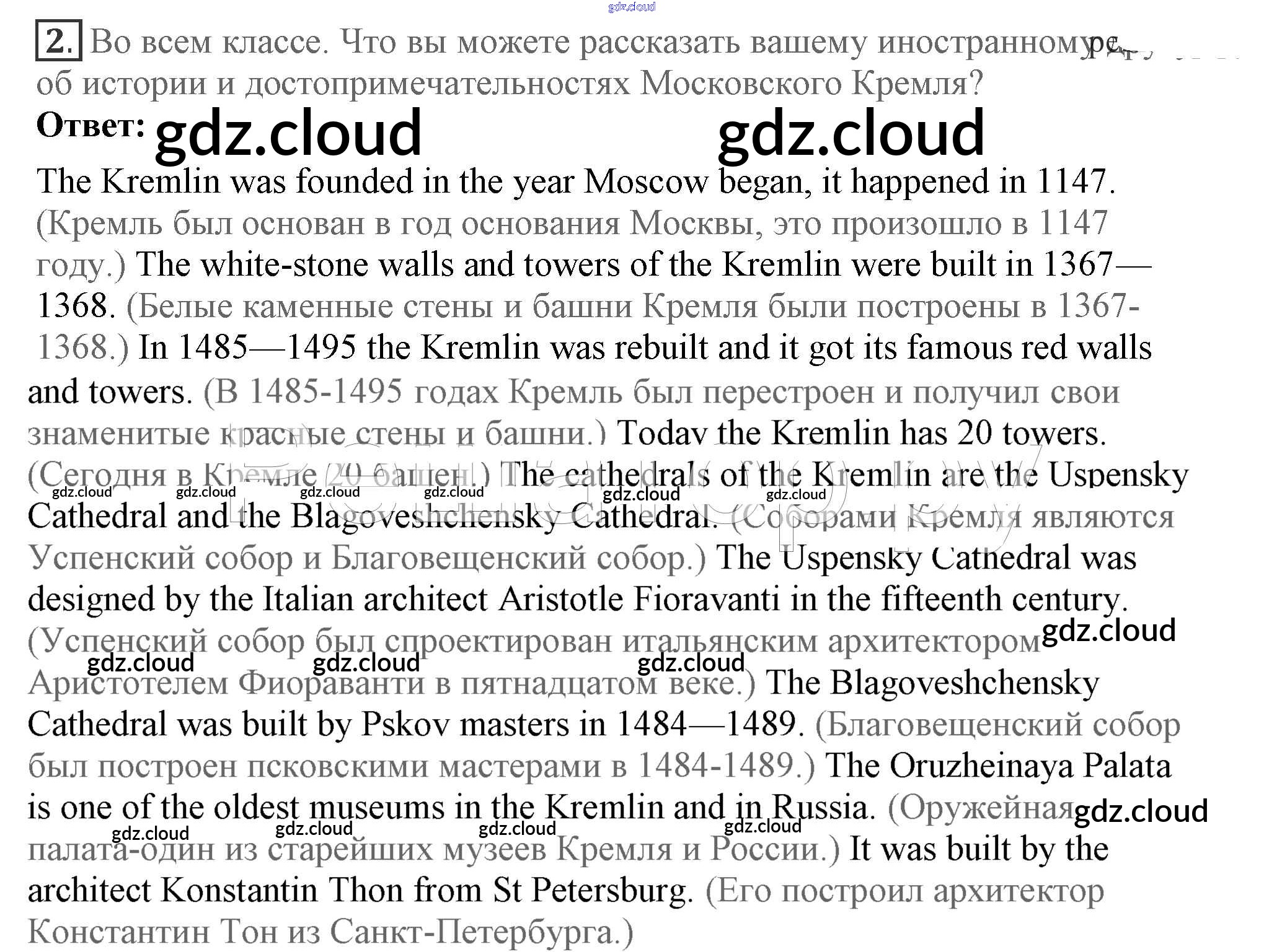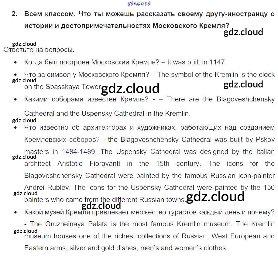 Lesson 6 Ответы к Unit 9. What are the most famous sights of your counry? по Английскому языку 7 класс Учебник Кузовлев УМК Просвещение