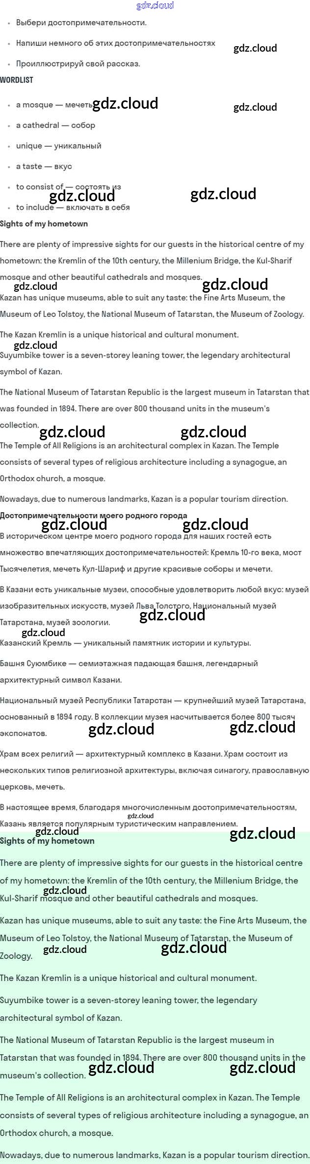 Lesson 7 Ответы к Unit 9. What are the most famous sights of your counry? по Английскому языку 7 класс Учебник Кузовлев УМК   Просвещение
