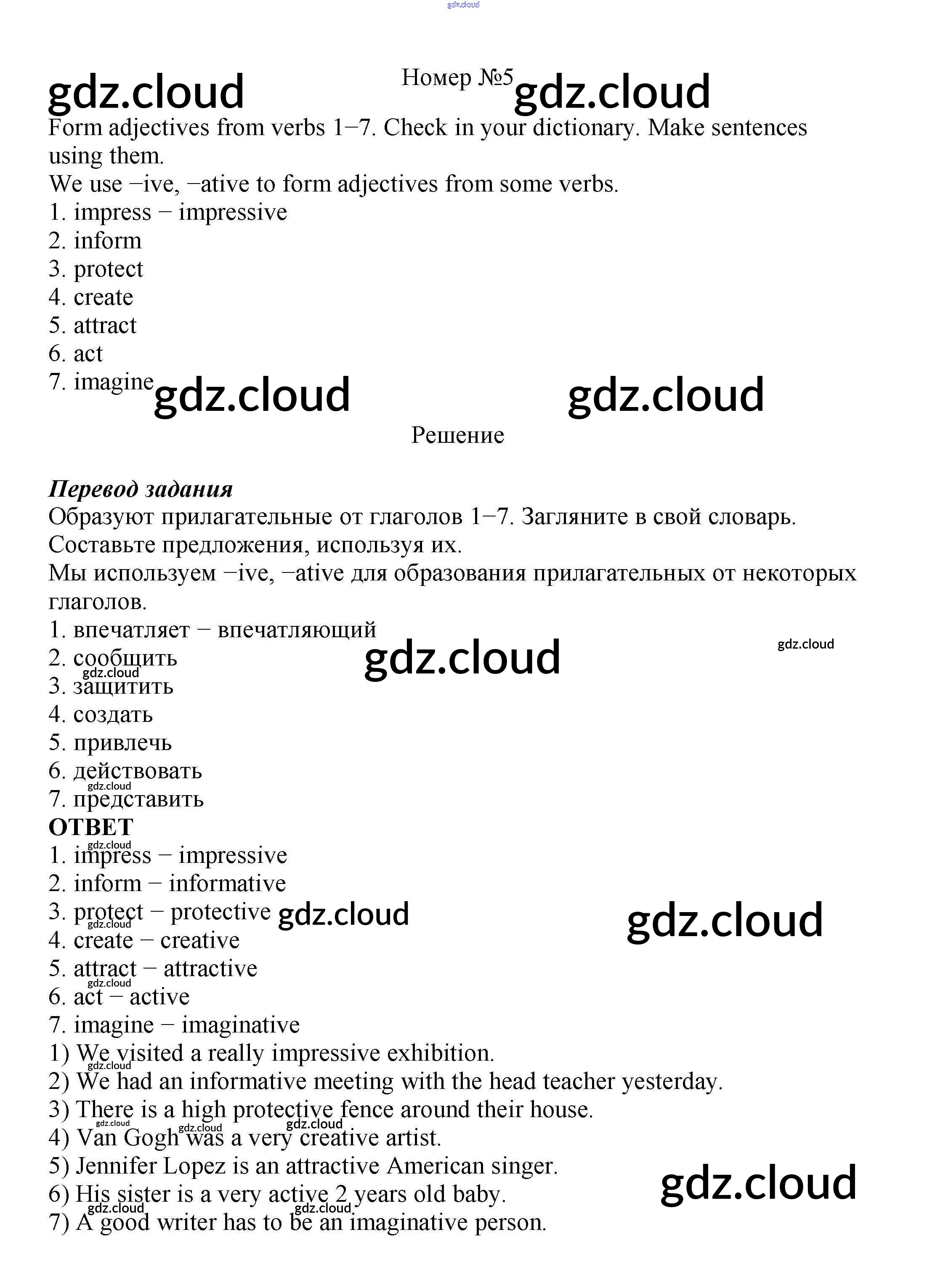 Ответ на задание 5 Учебник Английский язык за 7 (седьмой) класс Ваулина, Дули, Эванс, Подоляко Spotlight 2019