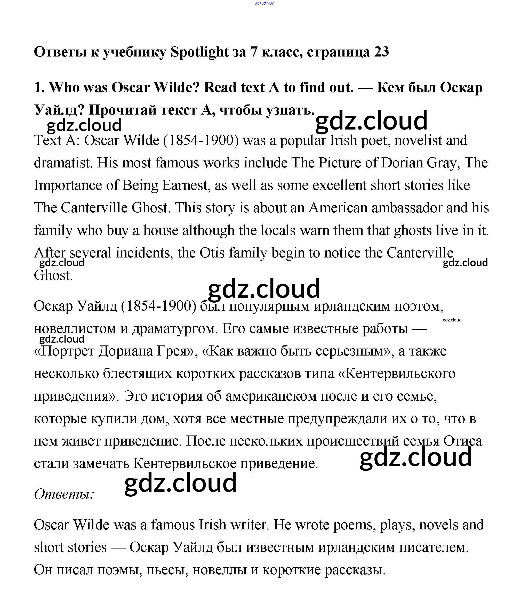 Ответ на задание 1 Учебник Английский язык за 7 (седьмой) класс Ваулина, Дули, Эванс, Подоляко Spotlight 2019
