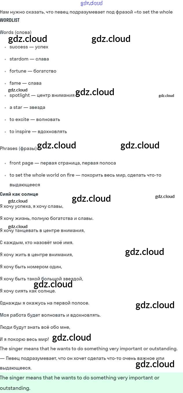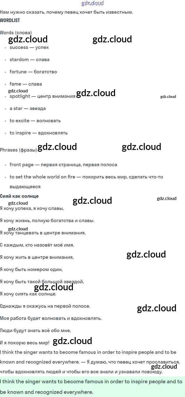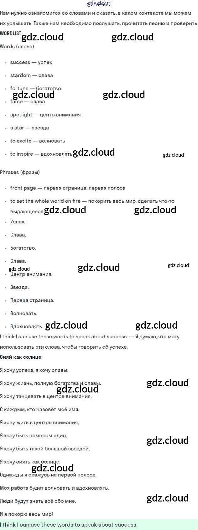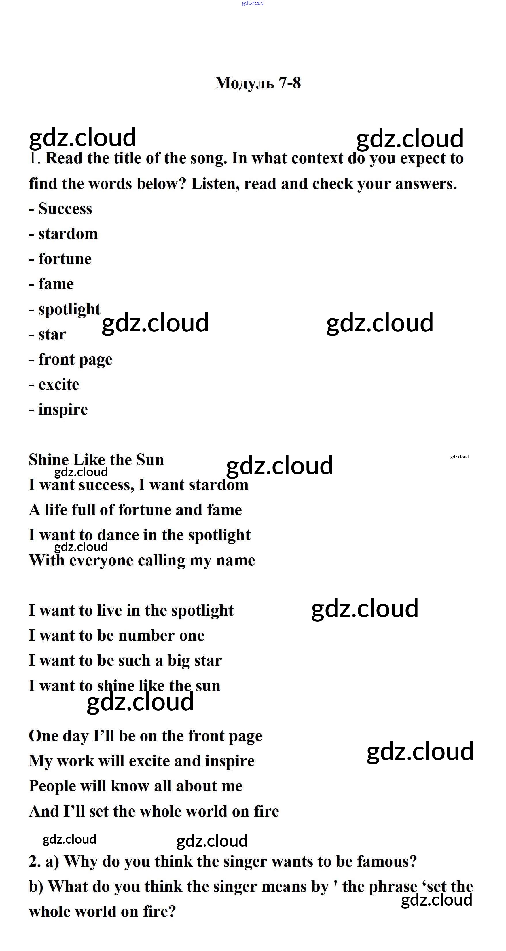 Song Sheets Spotlight (Модули) по Английскому языку 7 класс Учебник Ваулина Spotlight Просвещение