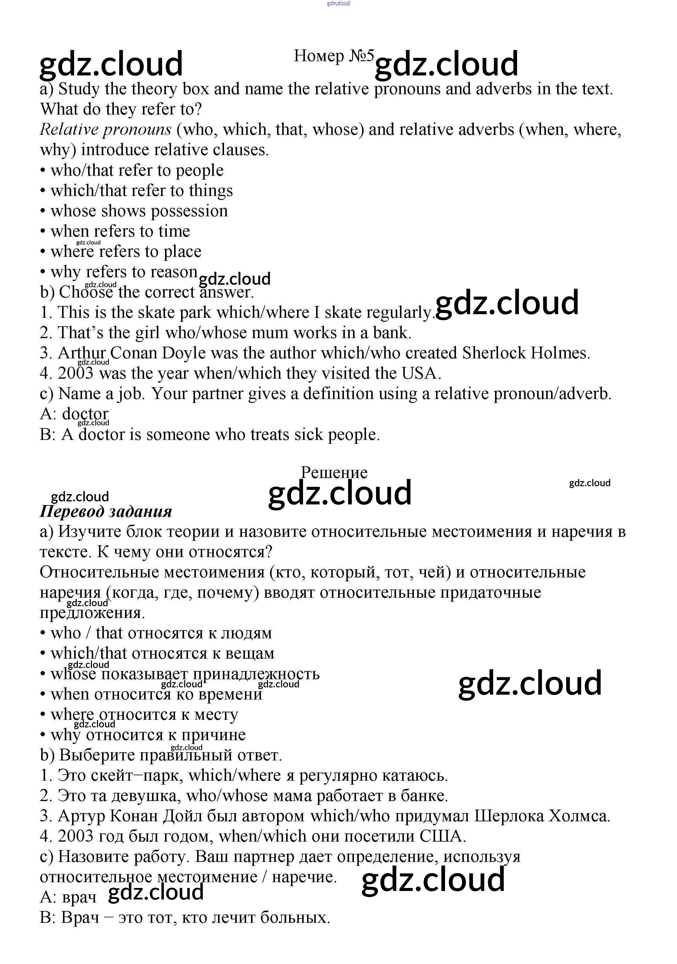 Ответ на задание 5 Учебник Английский язык за 7 (седьмой) класс Ваулина, Дули, Эванс, Подоляко Spotlight 2019