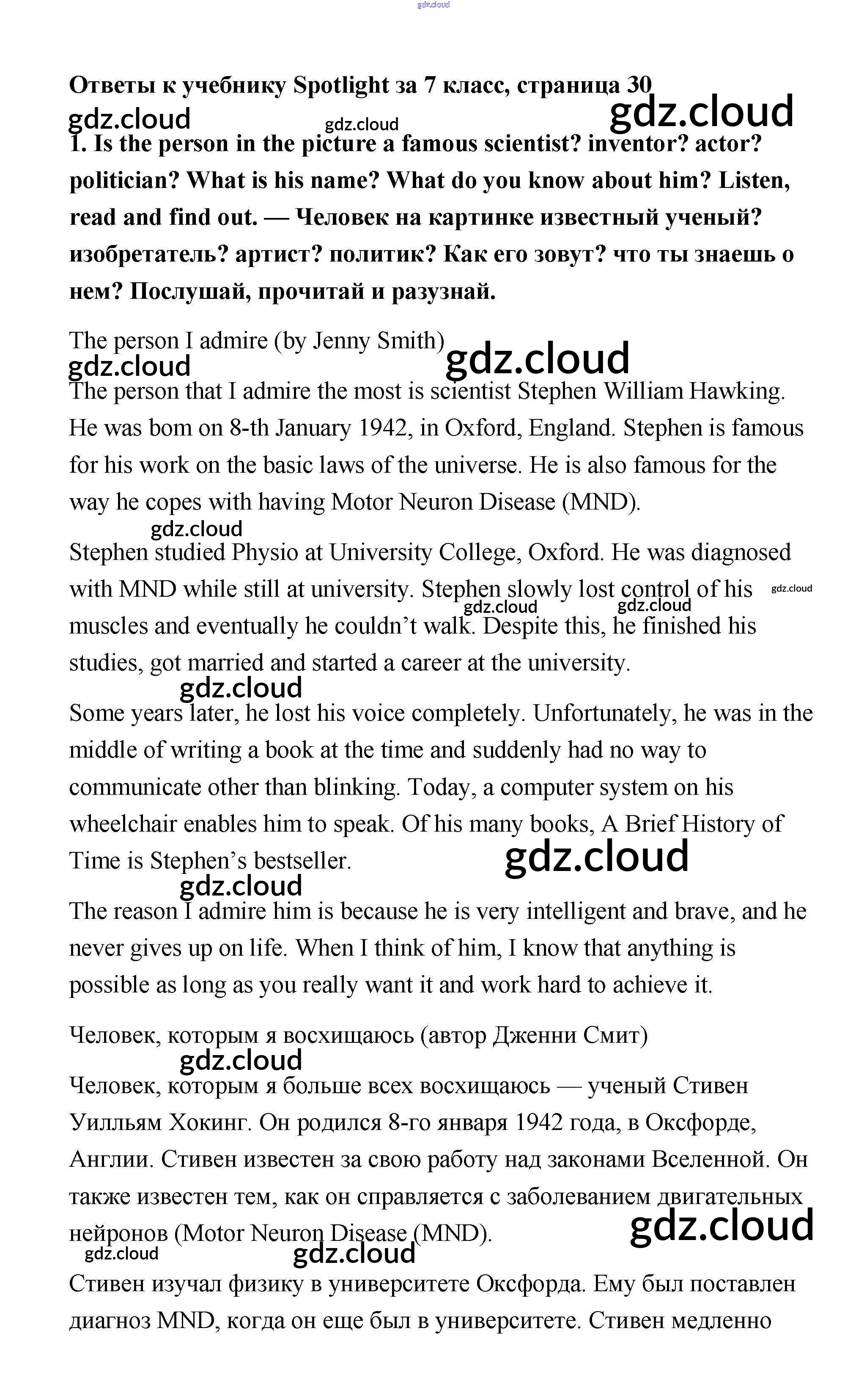 Ответ на задание 1 Учебник Английский язык за 7 (седьмой) класс Ваулина, Дули, Эванс, Подоляко Spotlight 2019