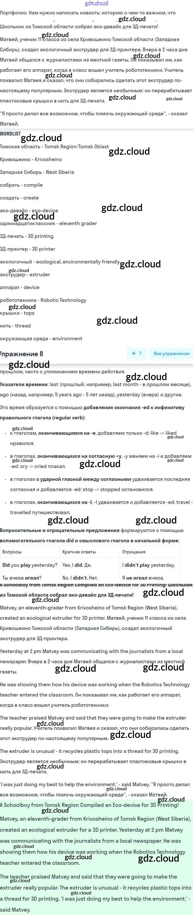 Ответ на задание 8 Учебник Английский язык за 7 (седьмой) класс Ваулина, Дули, Эванс, Подоляко Spotlight 2019