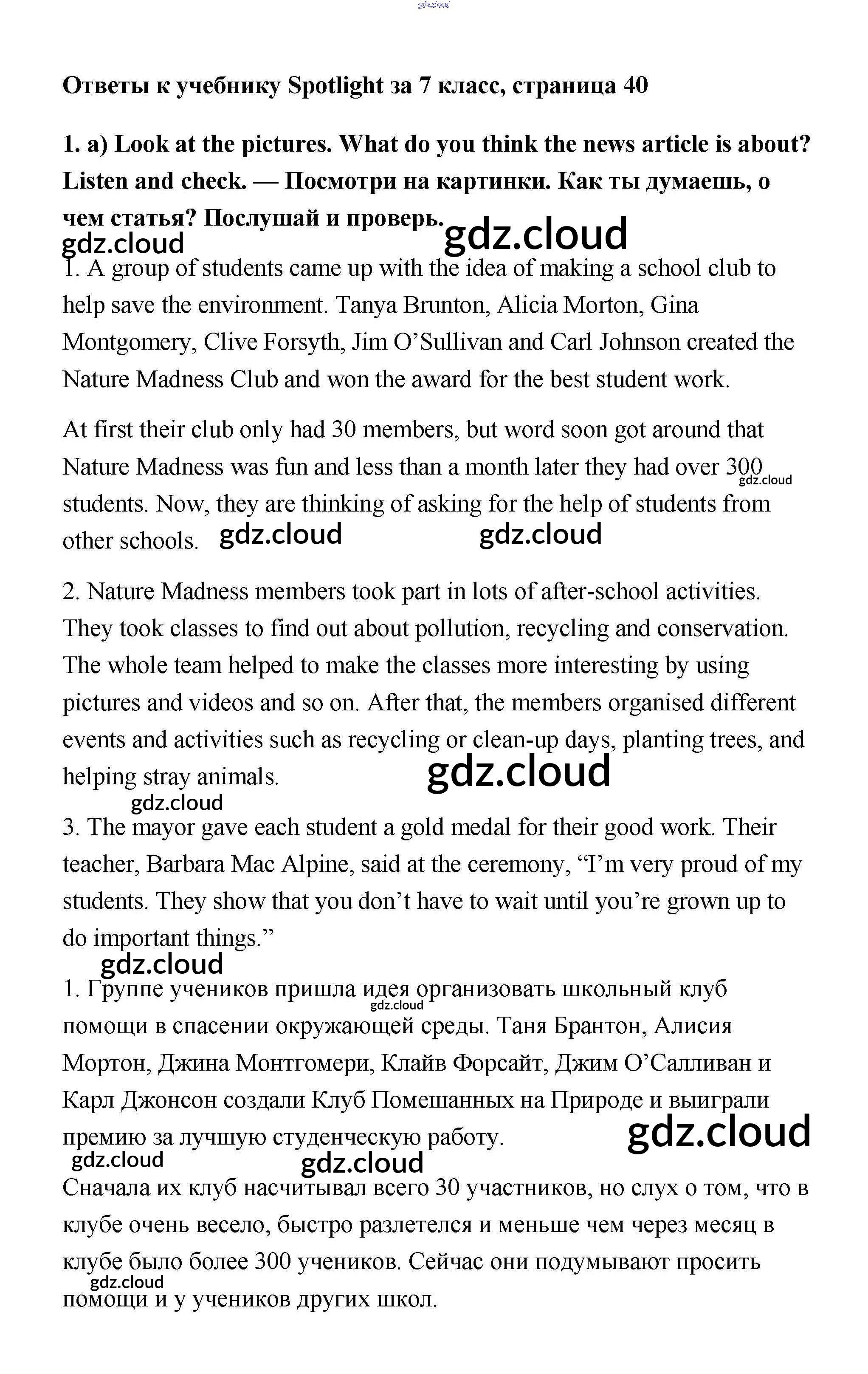 Ответ на задание 1 Учебник Английский язык за 7 (седьмой) класс Ваулина, Дули, Эванс, Подоляко Spotlight 2019