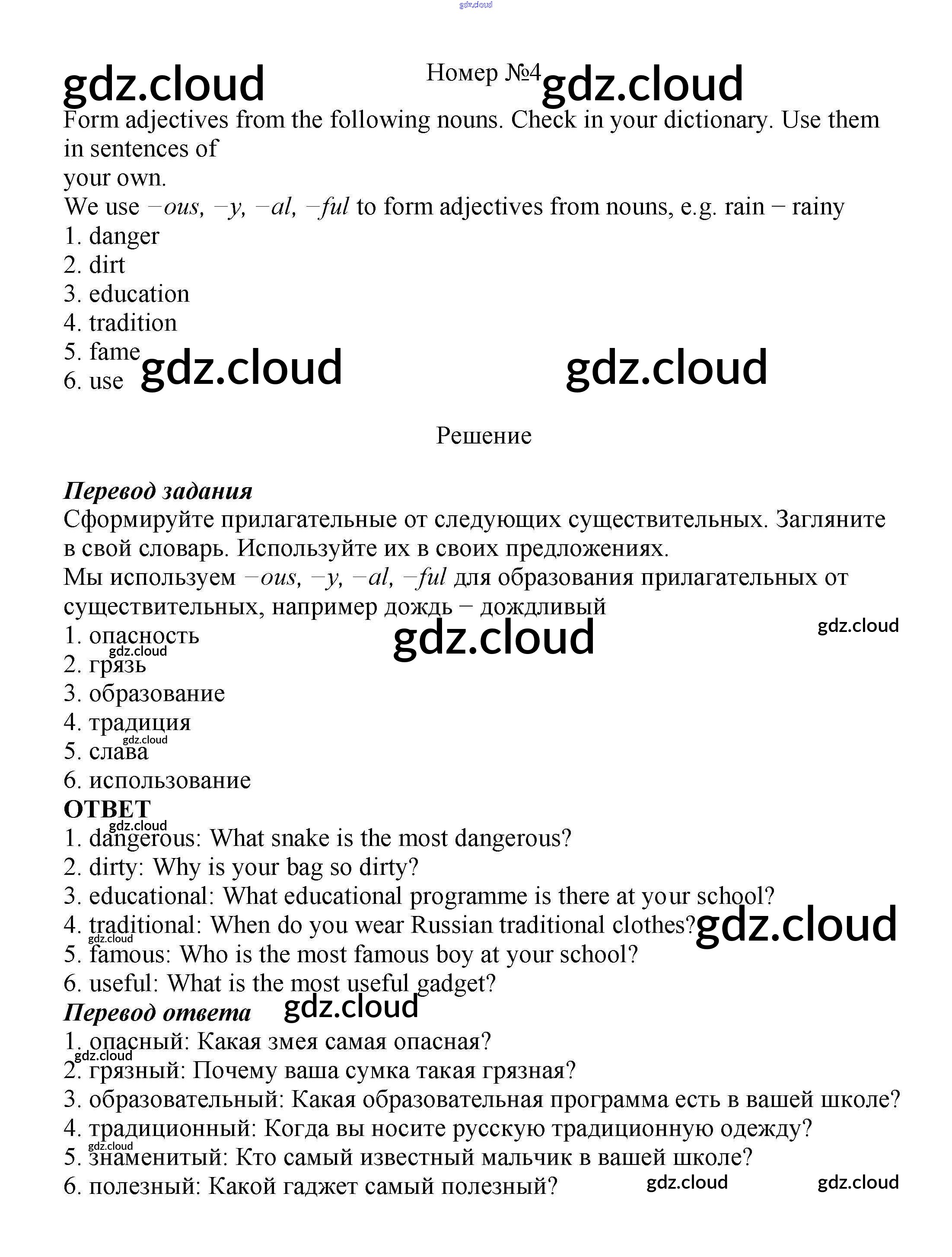 Ответ на задание 4 Учебник Английский язык за 7 (седьмой) класс Ваулина, Дули, Эванс, Подоляко Spotlight 2019
