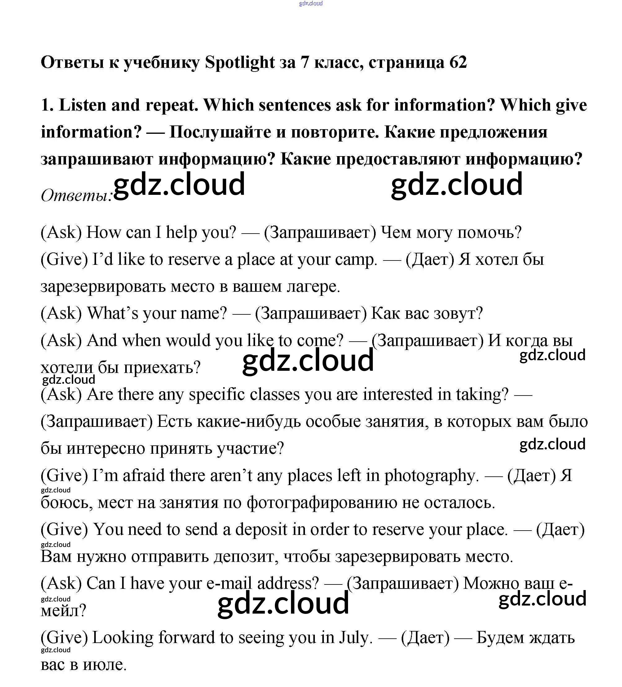 Ответ на задание 1 Учебник Английский язык за 7 (седьмой) класс Ваулина, Дули, Эванс, Подоляко Spotlight 2019