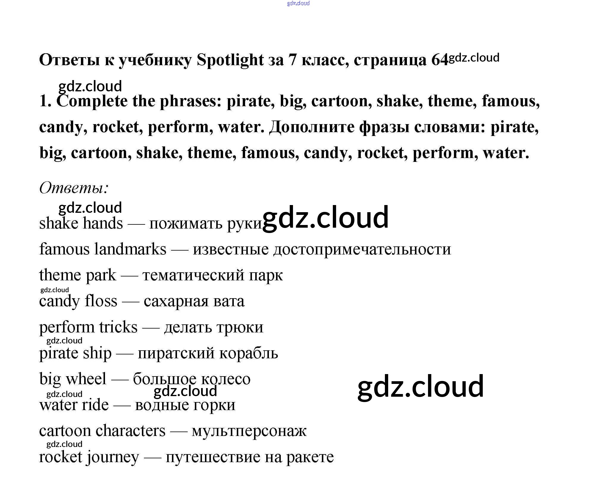 Ответ на задание 1 Учебник Английский язык за 7 (седьмой) класс Ваулина, Дули, Эванс, Подоляко Spotlight 2019