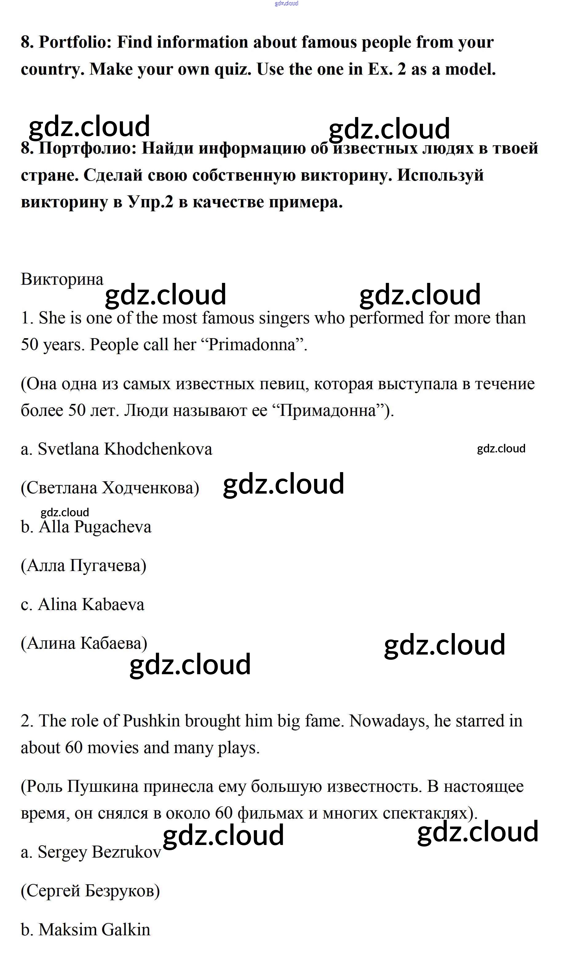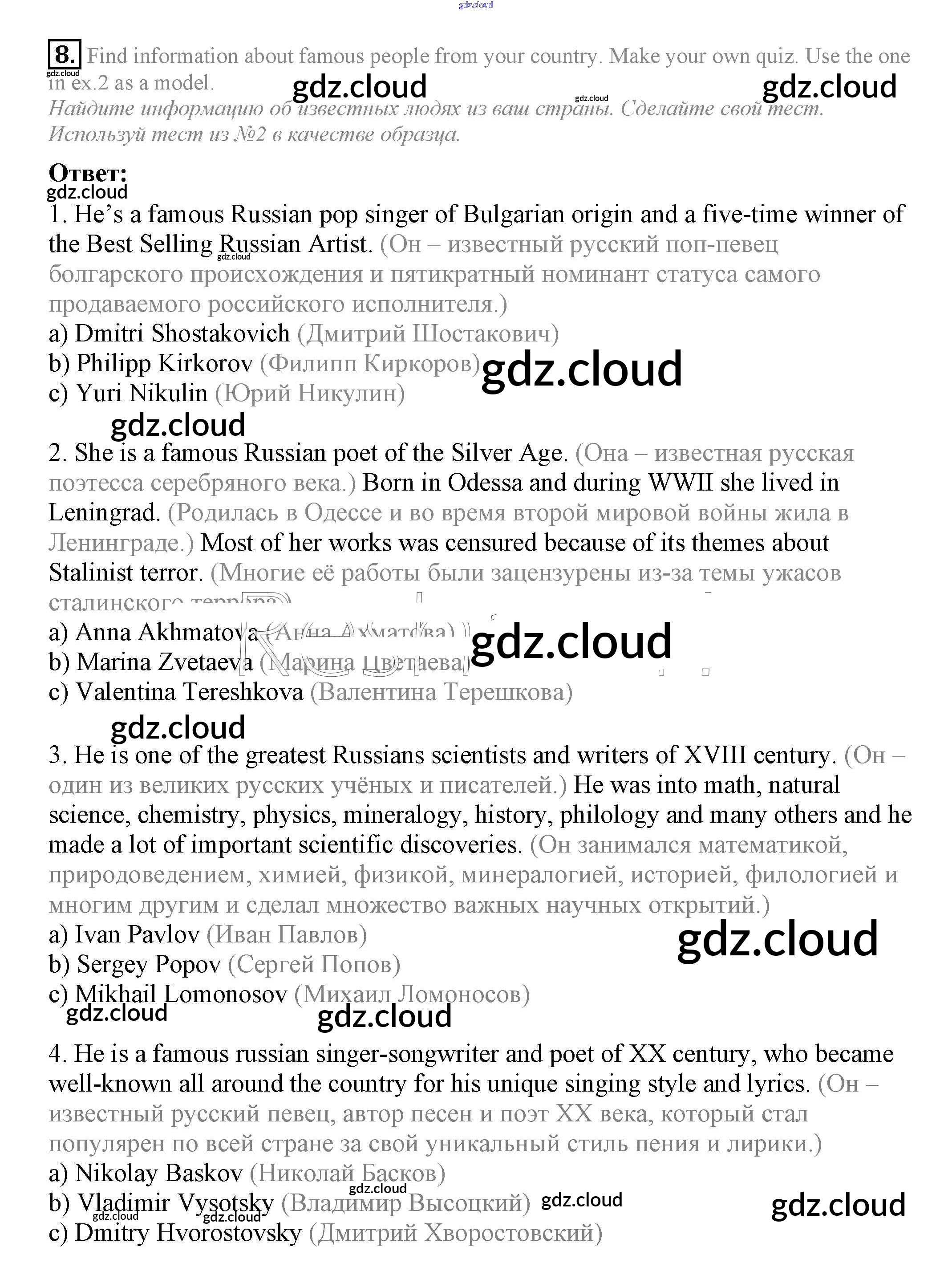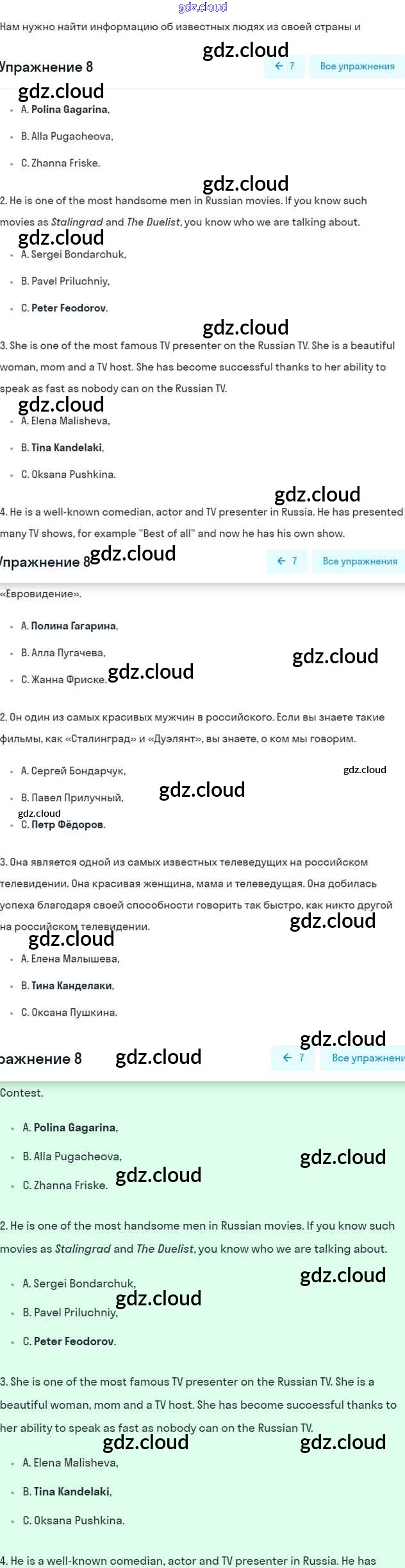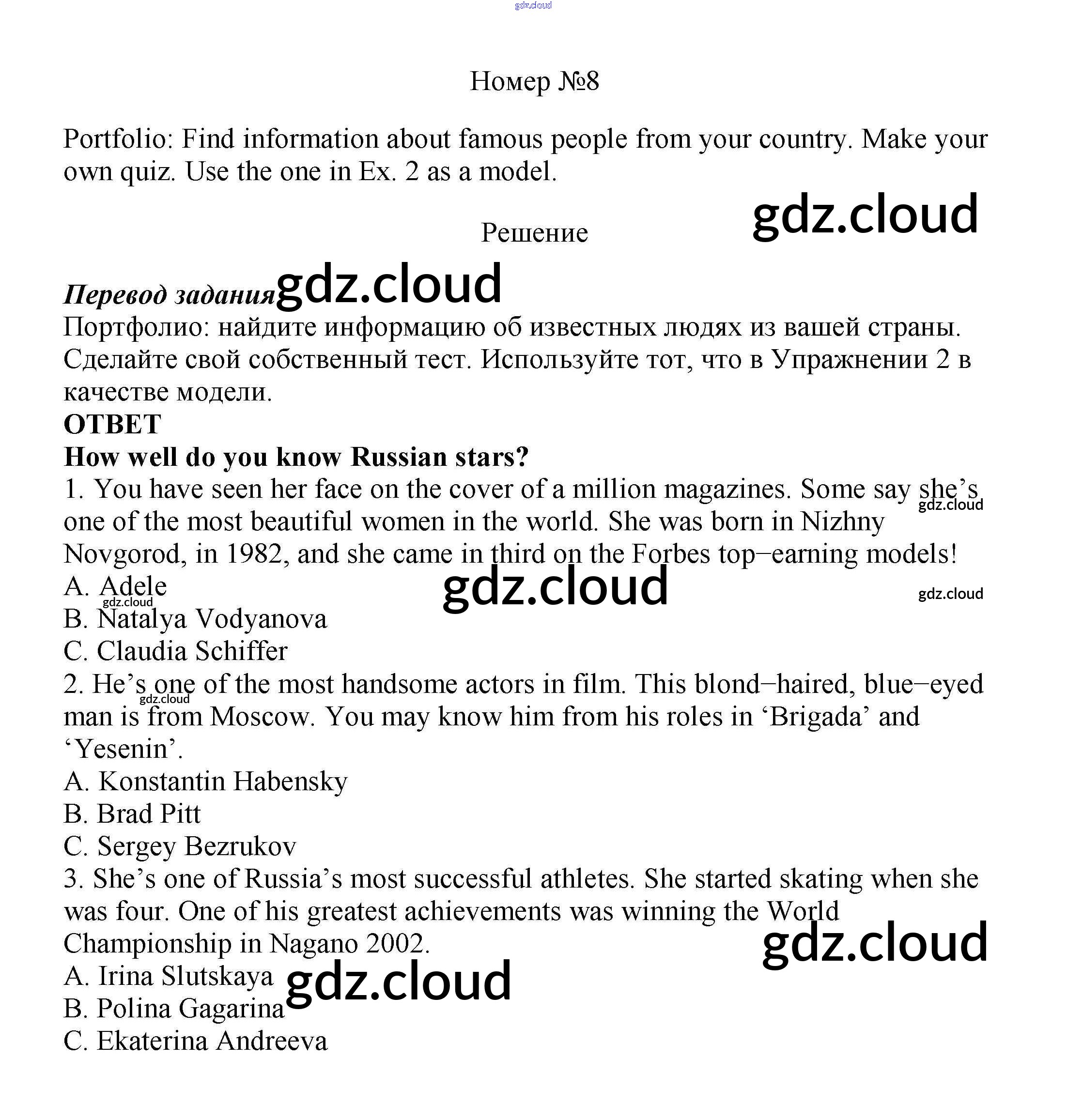 Ответ на задание 8 Учебник Английский язык за 7 (седьмой) класс Ваулина, Дули, Эванс, Подоляко Spotlight 2019