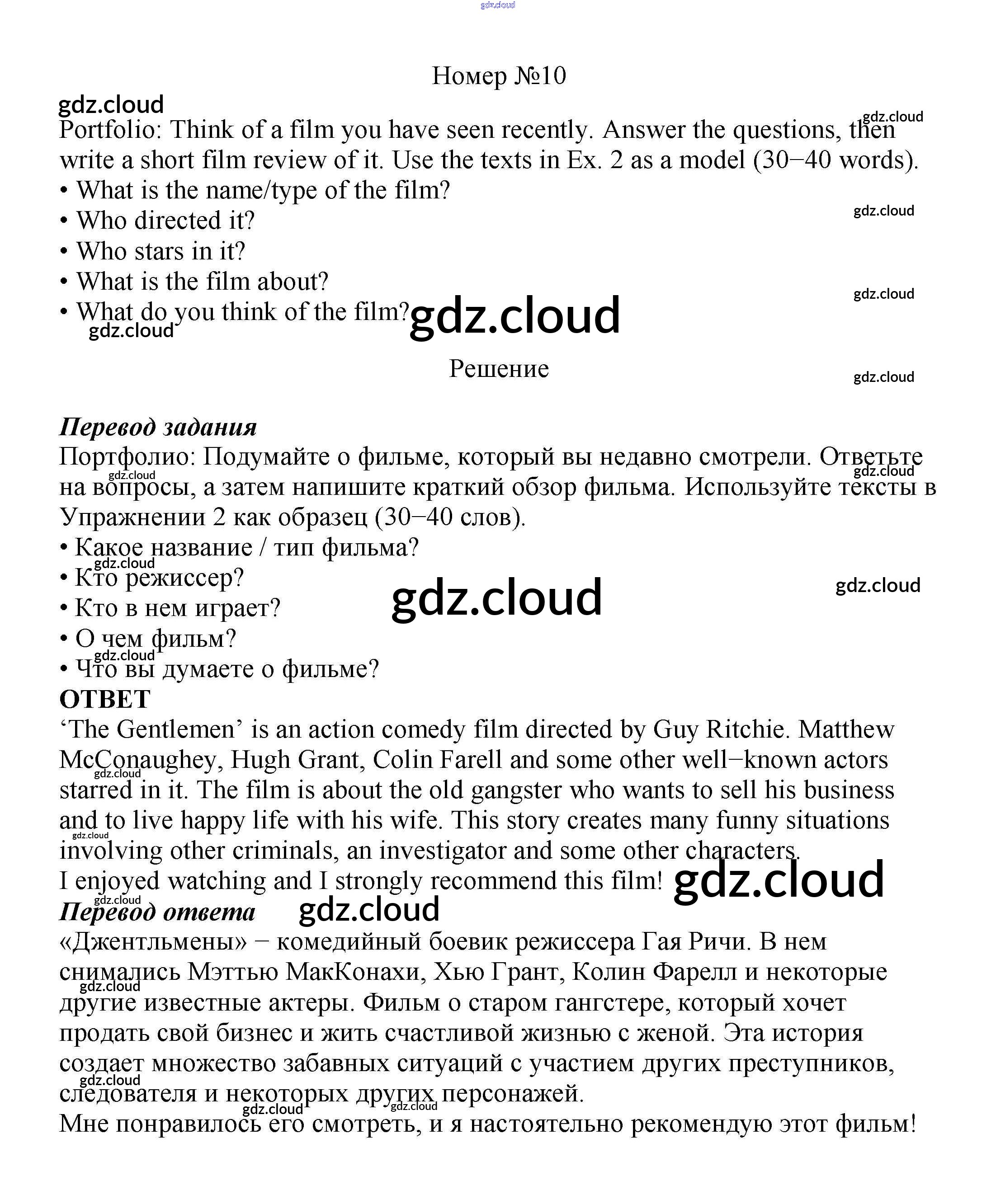 Ответ на задание 10 Учебник Английский язык за 7 (седьмой) класс Ваулина, Дули, Эванс, Подоляко Spotlight 2019