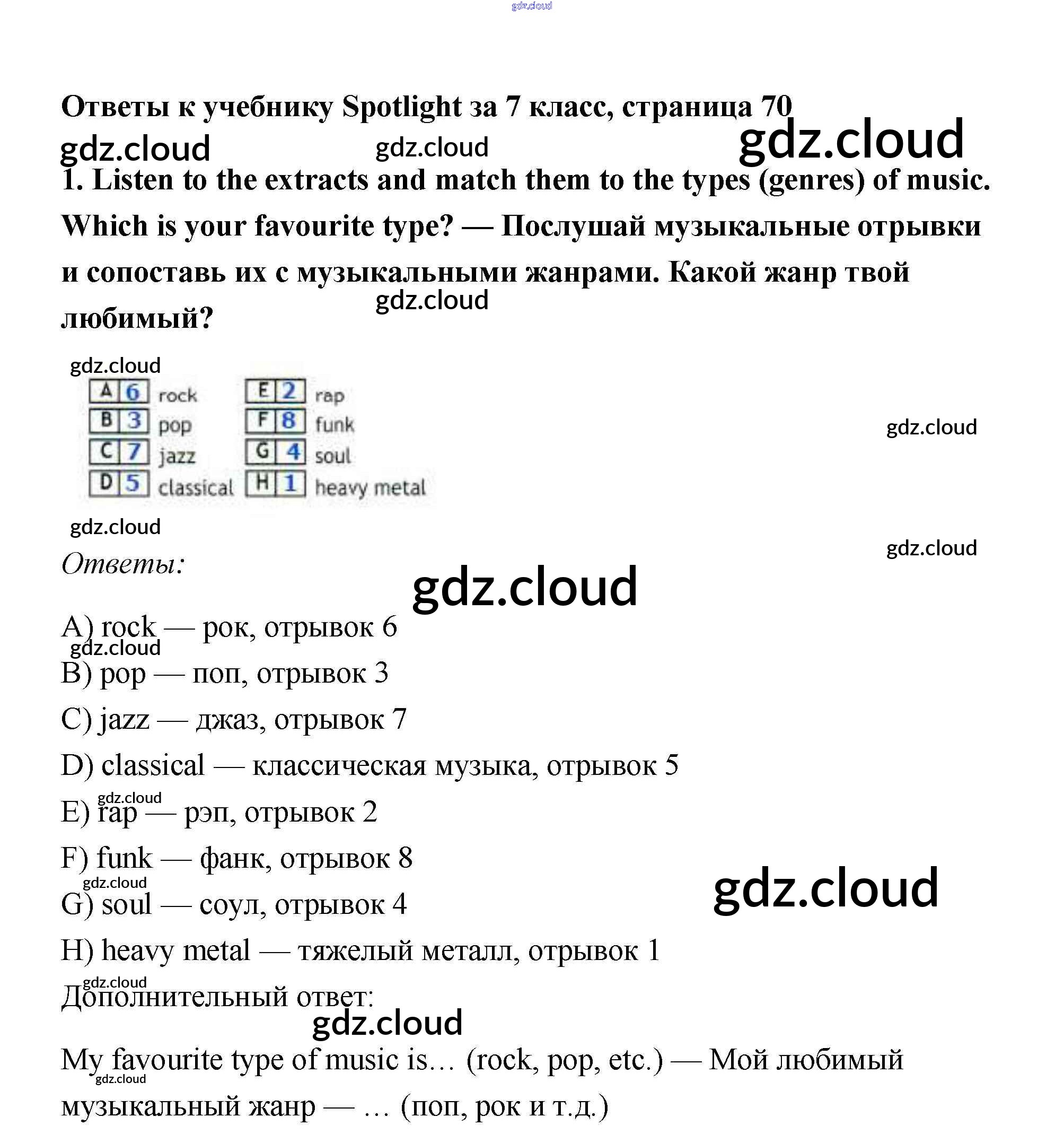Ответ на задание 1 Учебник Английский язык за 7 (седьмой) класс Ваулина, Дули, Эванс, Подоляко Spotlight 2019