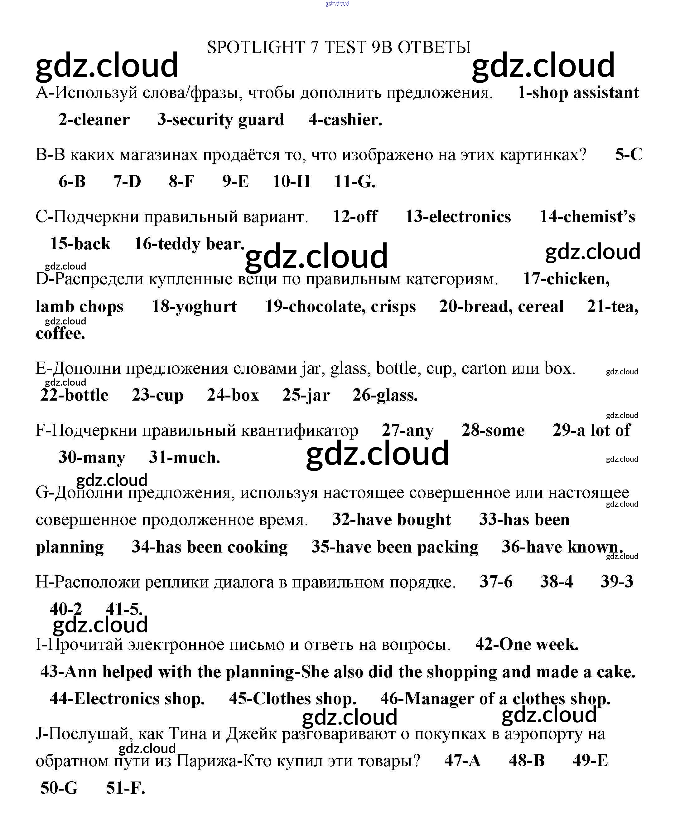 Ответы. Тест 9  по Английскому языку 7 класс Контрольные задания Ваулина Spotlight   Просвещение
