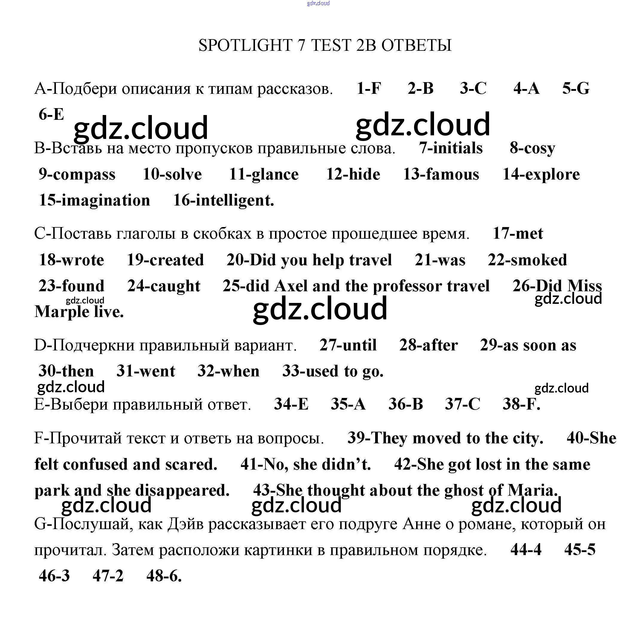 Ответы. Тест 2 по Английскому языку 7 класс Контрольные задания Ваулина Spotlight Просвещение