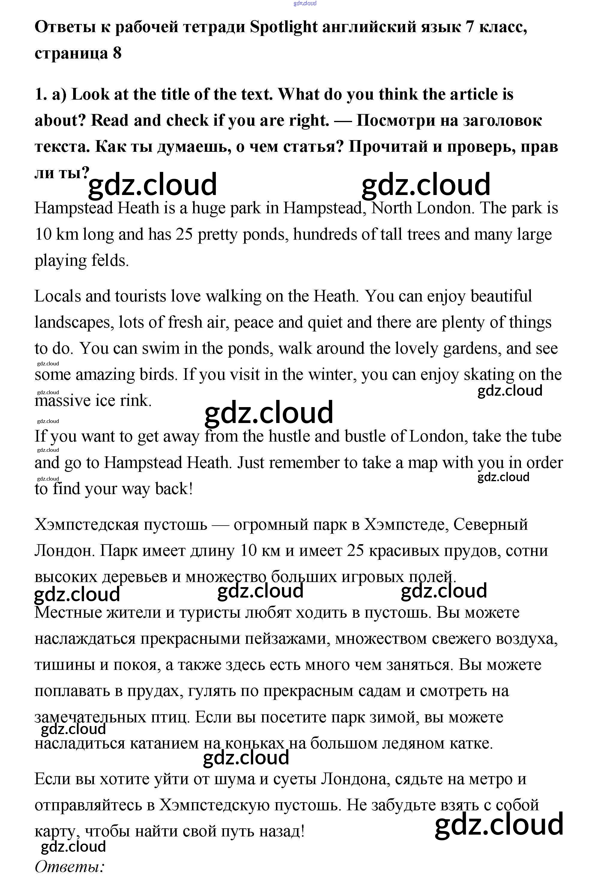 Ответ на задание 1 Рабочая тетрадь Английский язык  за 7 (седьмой) класс Ваулина, Подоляко, Эванс, Дули Spotlight  2015