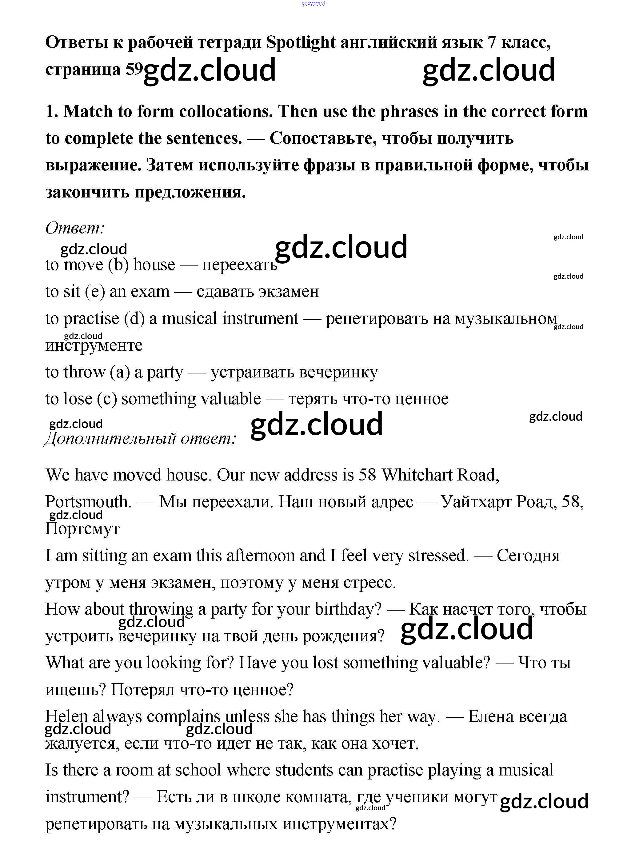 Ответ на задание 1 Рабочая тетрадь Английский язык за 7 (седьмой) класс Ваулина, Подоляко, Эванс, Дули Spotlight 2015
