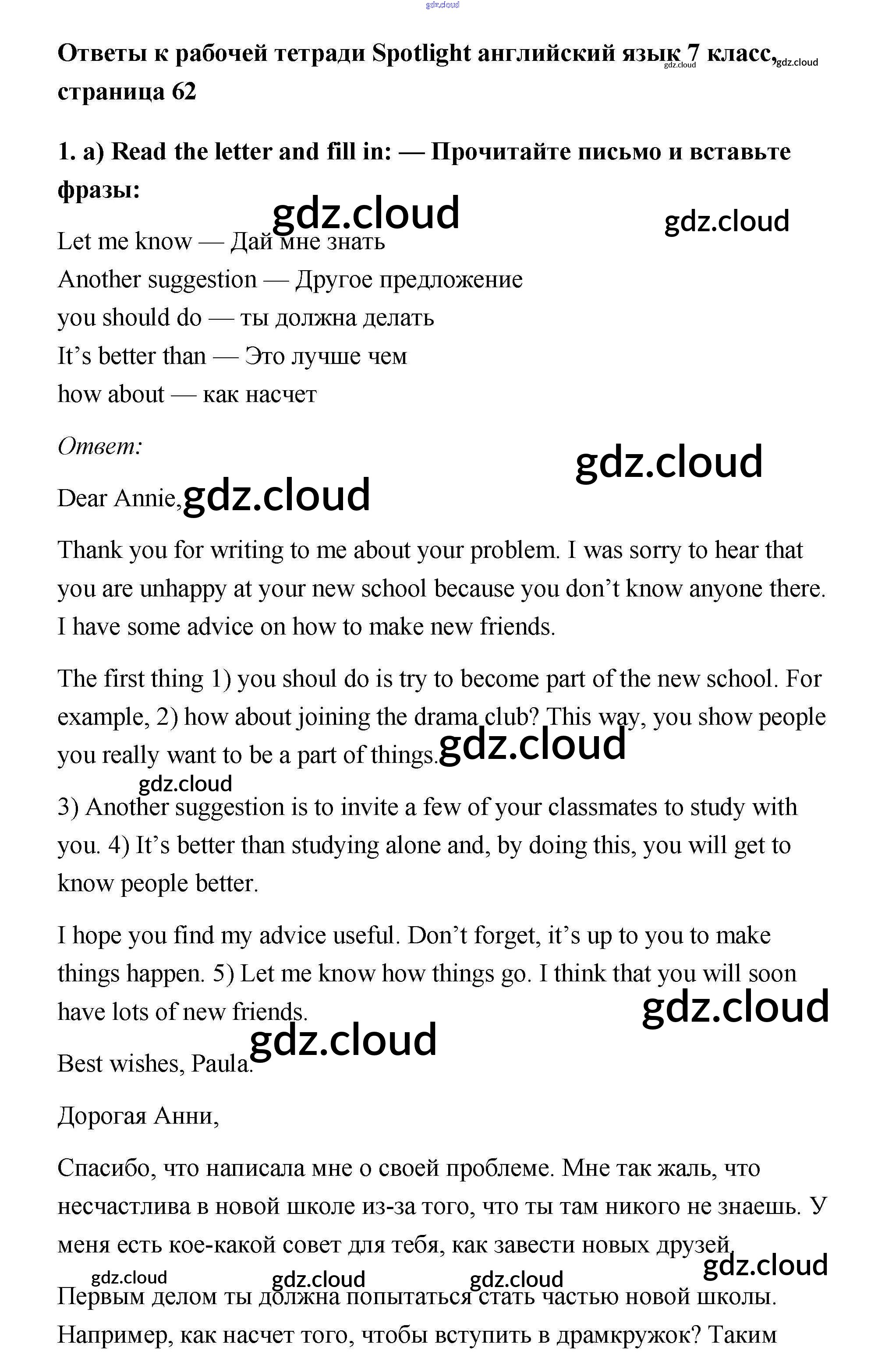 Ответ на задание 1 Рабочая тетрадь Английский язык за 7 (седьмой) класс Ваулина, Подоляко, Эванс, Дули Spotlight 2015