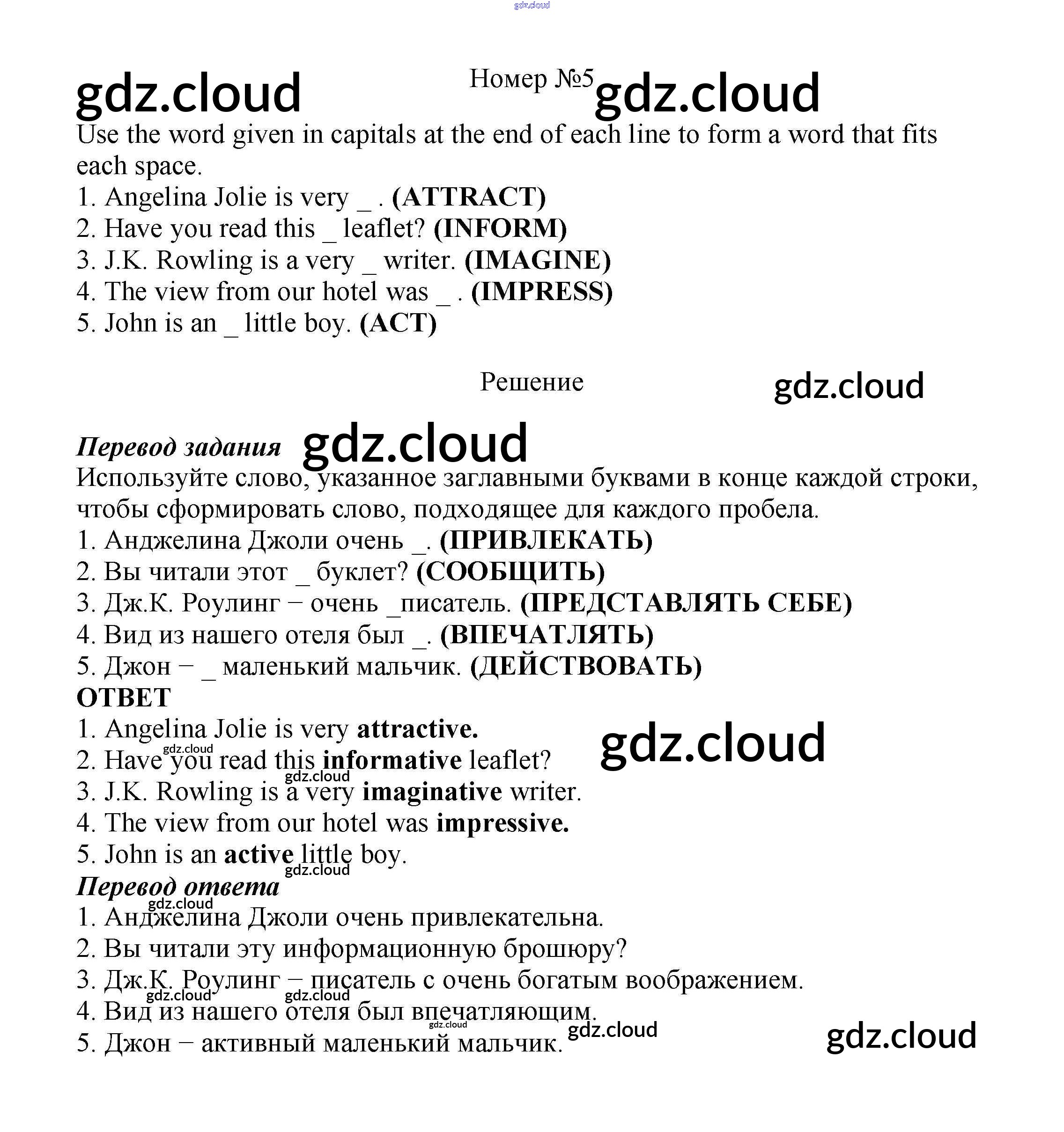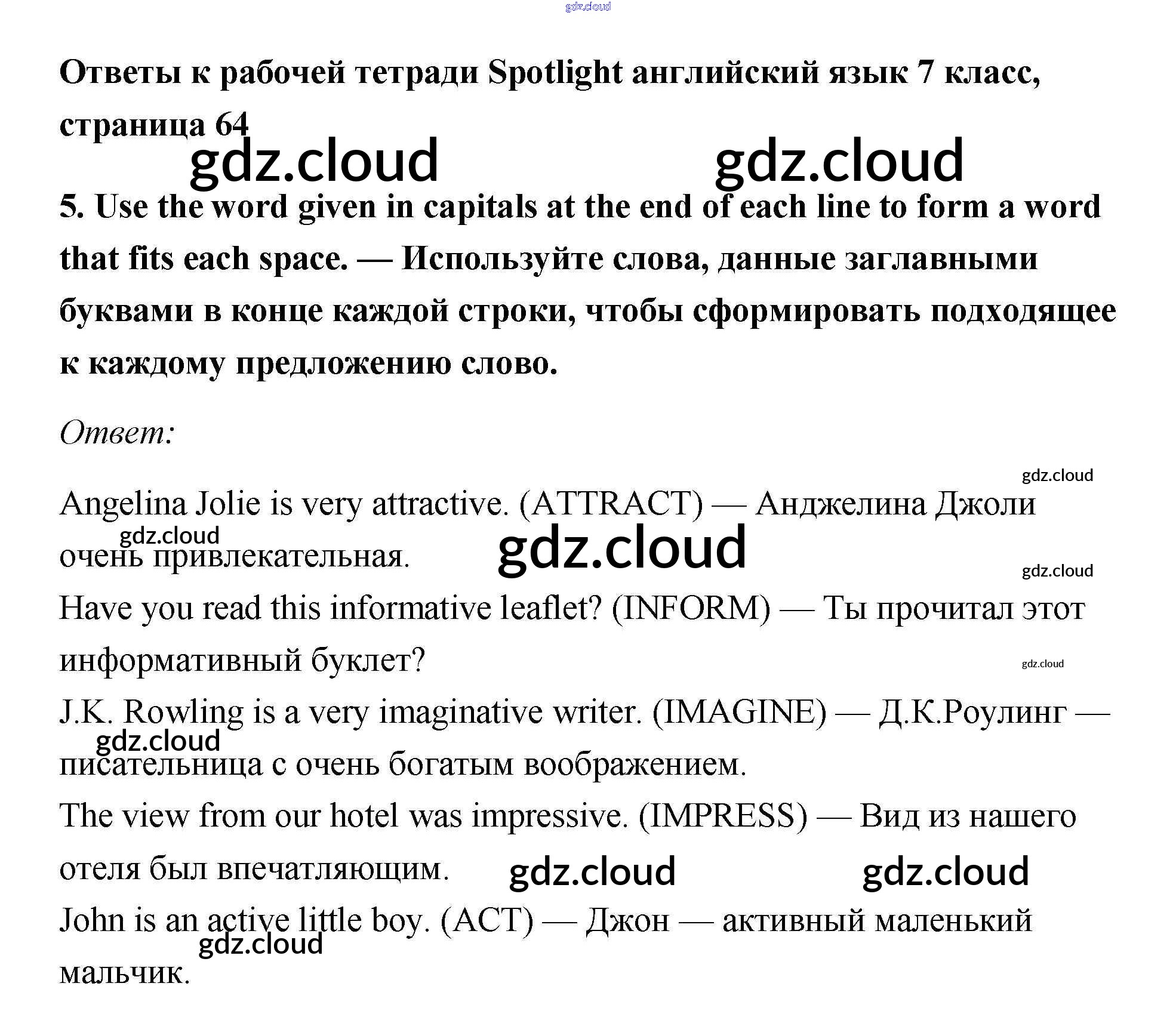Ответ на задание 5 Рабочая тетрадь Английский язык  за 7 (седьмой) класс Ваулина, Подоляко, Эванс, Дули Spotlight  2015