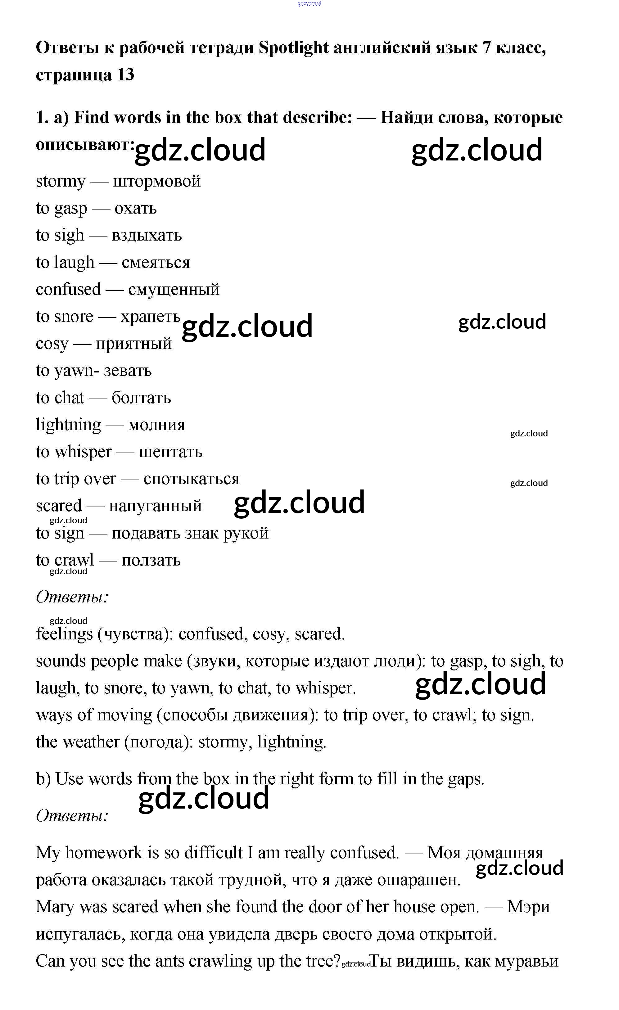 Ответ на задание 1 Рабочая тетрадь Английский язык за 7 (седьмой) класс Ваулина, Подоляко, Эванс, Дули Spotlight 2015