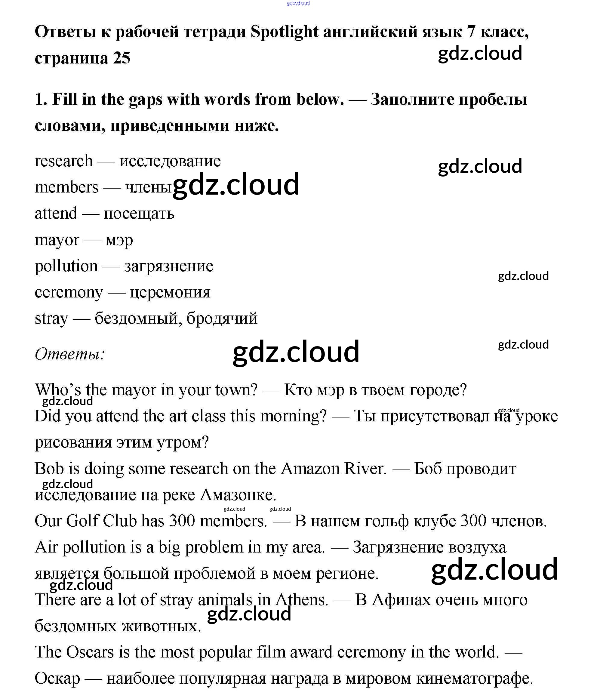 Ответ на задание 1 Рабочая тетрадь Английский язык  за 7 (седьмой) класс Ваулина, Подоляко, Эванс, Дули Spotlight  2015