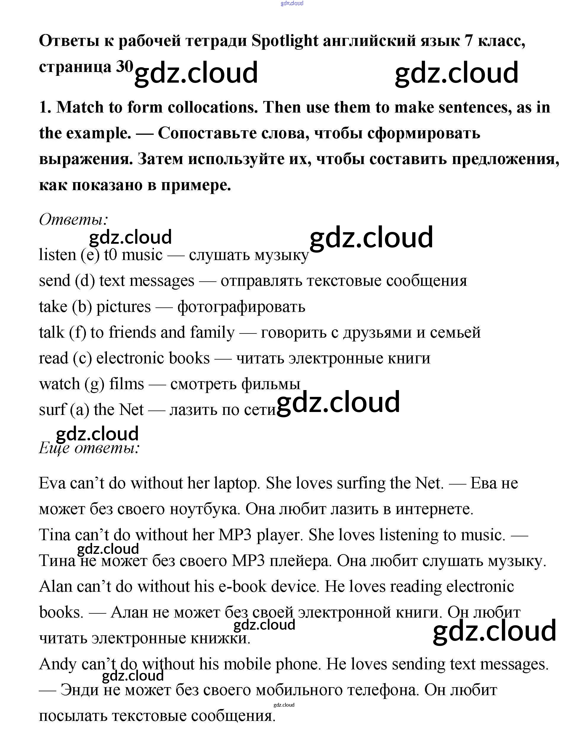 Ответ на задание 1 Рабочая тетрадь Английский язык за 7 (седьмой) класс Ваулина, Подоляко, Эванс, Дули Spotlight 2015