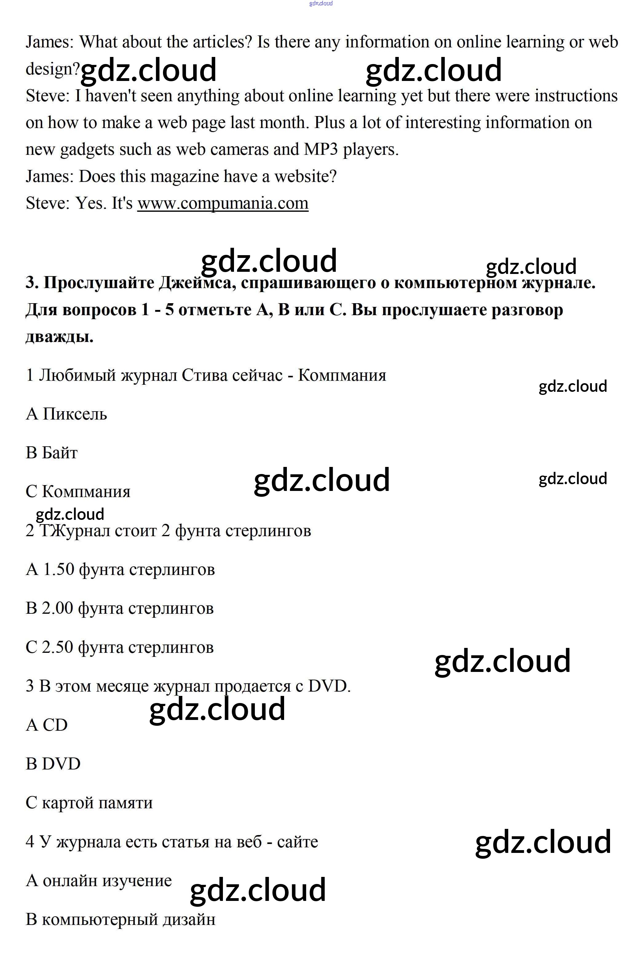 Ответ на задание 3 Рабочая тетрадь Английский язык за 7 (седьмой) класс Ваулина, Подоляко, Эванс, Дули Spotlight 2015