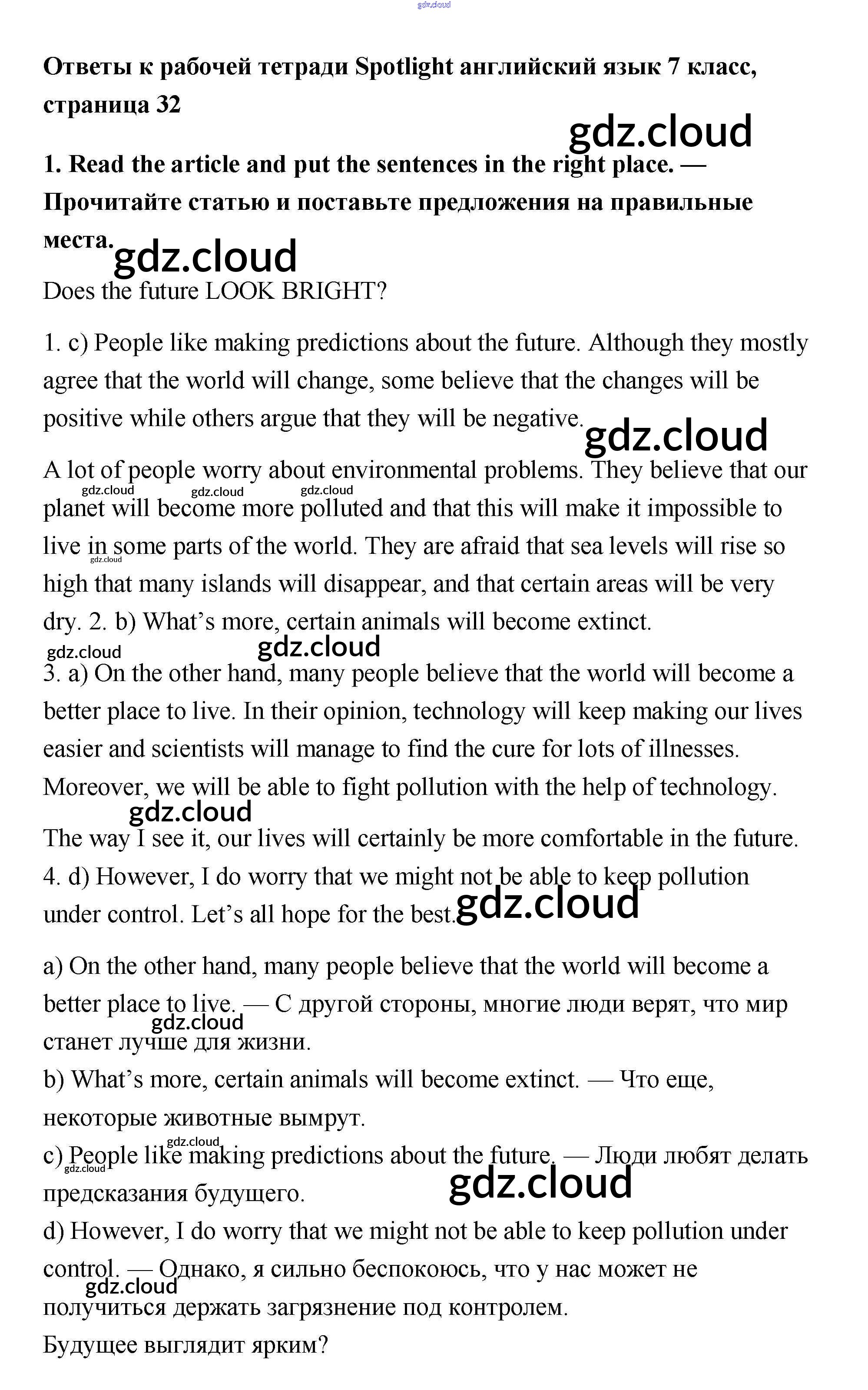 Ответ на задание 1 Рабочая тетрадь Английский язык  за 7 (седьмой) класс Ваулина, Подоляко, Эванс, Дули Spotlight  2015