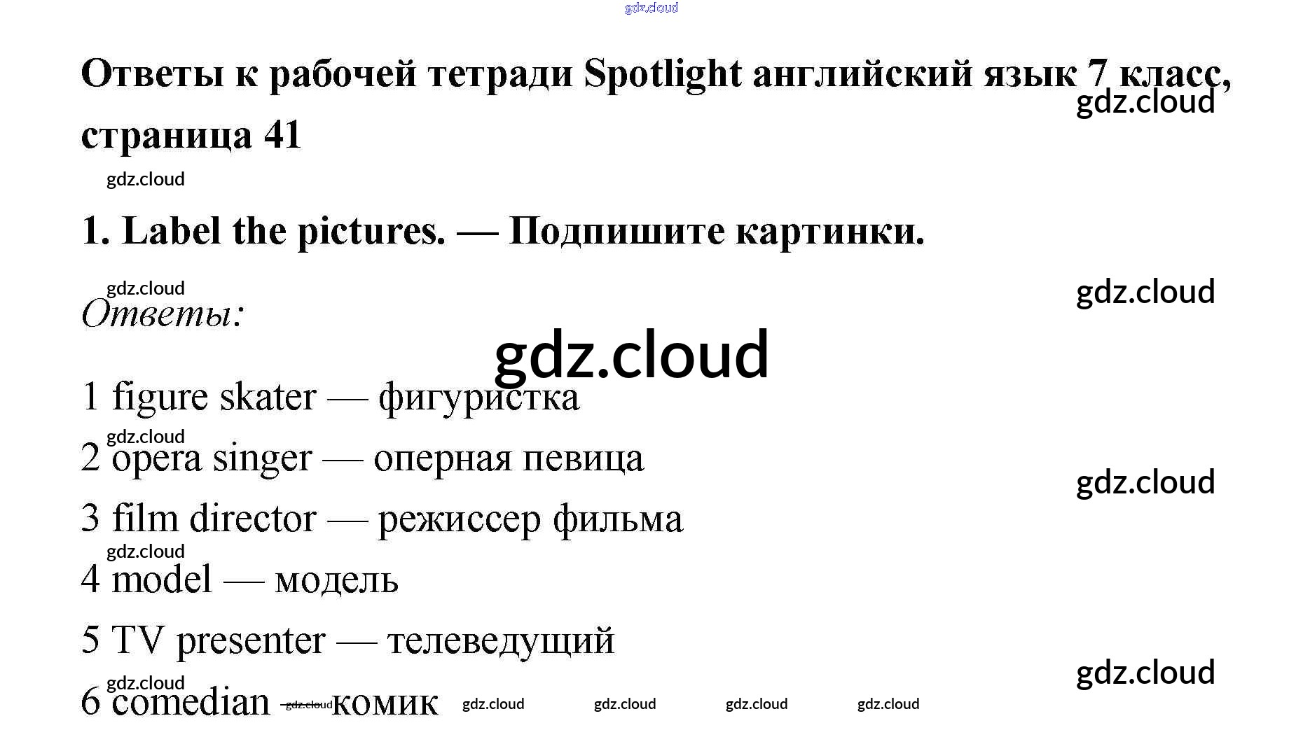 Ответ на задание 1 Рабочая тетрадь Английский язык за 7 (седьмой) класс Ваулина, Подоляко, Эванс, Дули Spotlight 2015