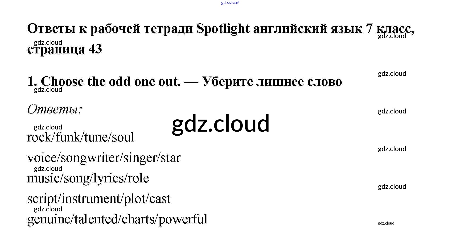 Ответ на задание 1 Рабочая тетрадь Английский язык  за 7 (седьмой) класс Ваулина, Подоляко, Эванс, Дули Spotlight  2015