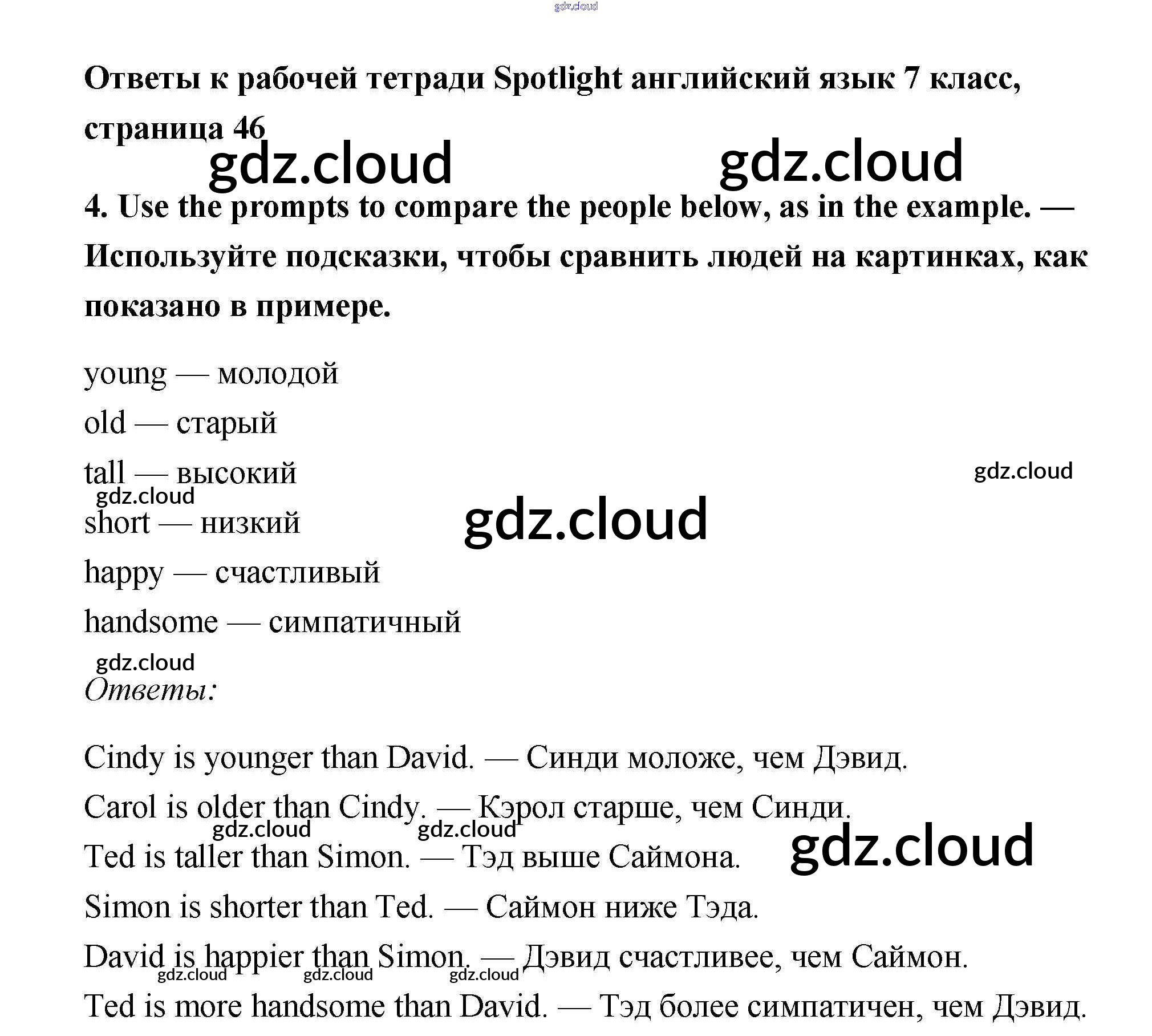 Ответ на задание 4 Рабочая тетрадь Английский язык за 7 (седьмой) класс Ваулина, Подоляко, Эванс, Дули Spotlight 2015