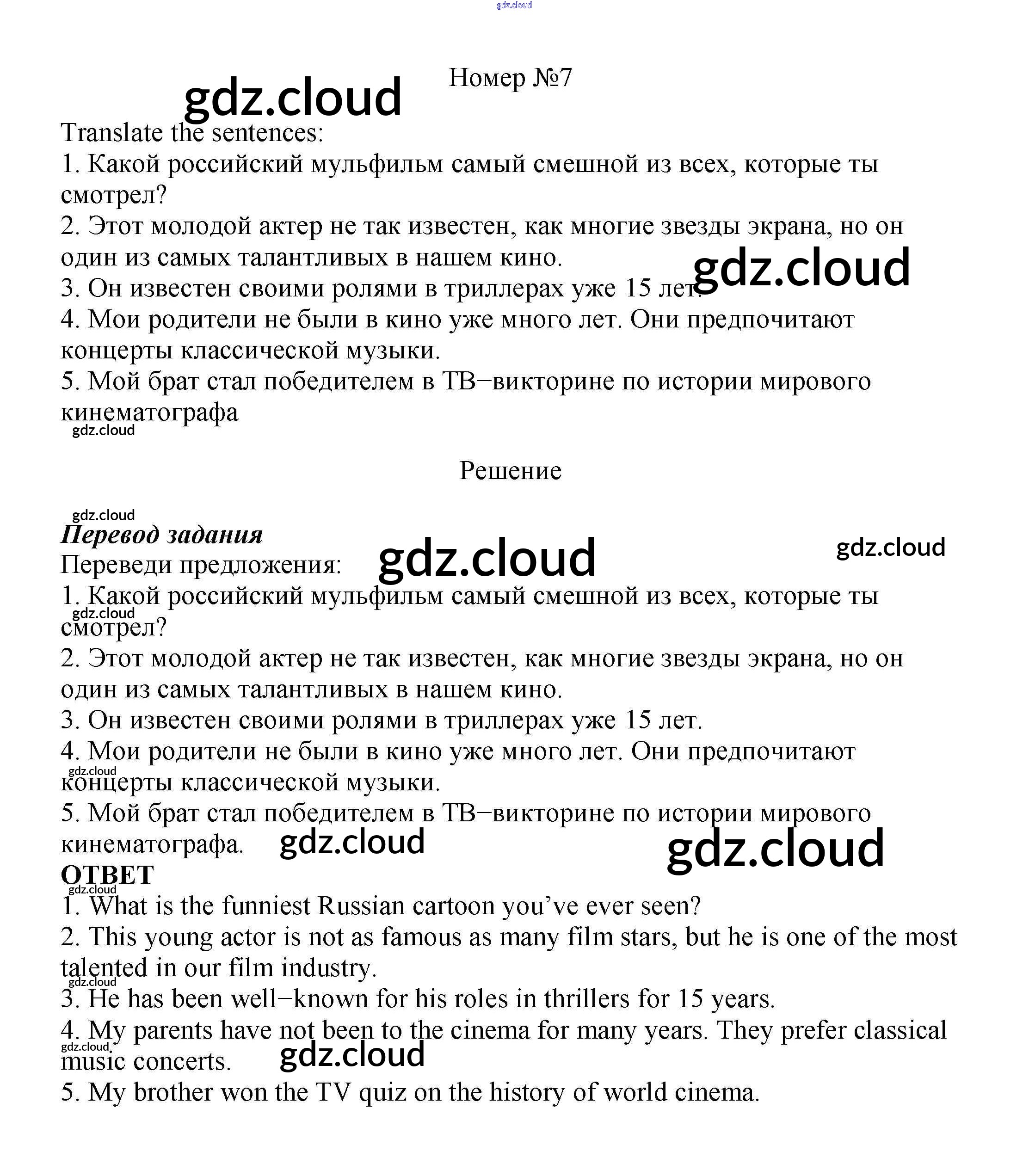Ответ на задание 7 Рабочая тетрадь Английский язык  за 7 (седьмой) класс Ваулина, Подоляко, Эванс, Дули Spotlight  2015