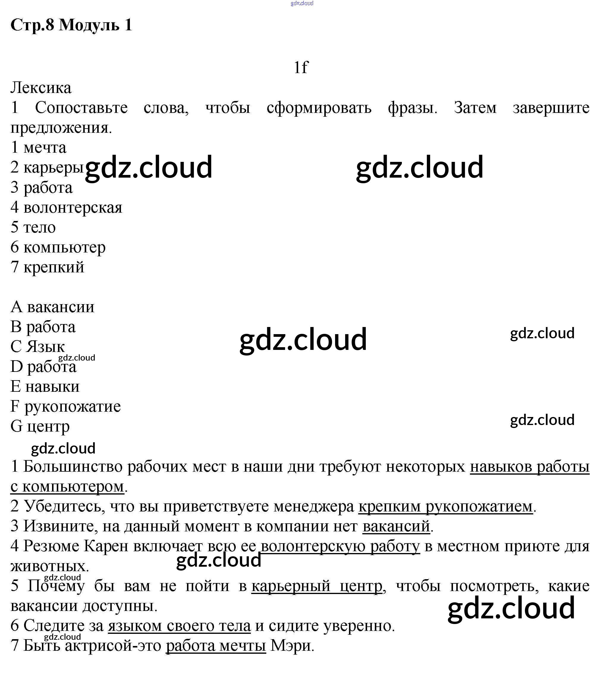 Ответ на задание стр.8 Рабочая тетрадь Английский язык за 7 (седьмой) класс Баранова, Дули, Эванс, Копылова, Мильруд Starlight Углубленный уровень 2017