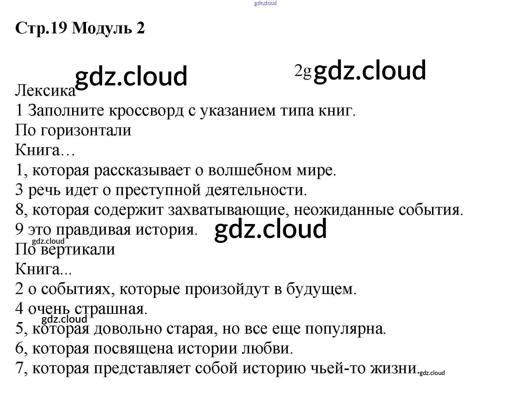 Ответ на задание стр.19 Рабочая тетрадь Английский язык  за 7 (седьмой) класс Баранова, Дули, Эванс, Копылова, Мильруд Starlight Углубленный уровень 2017
