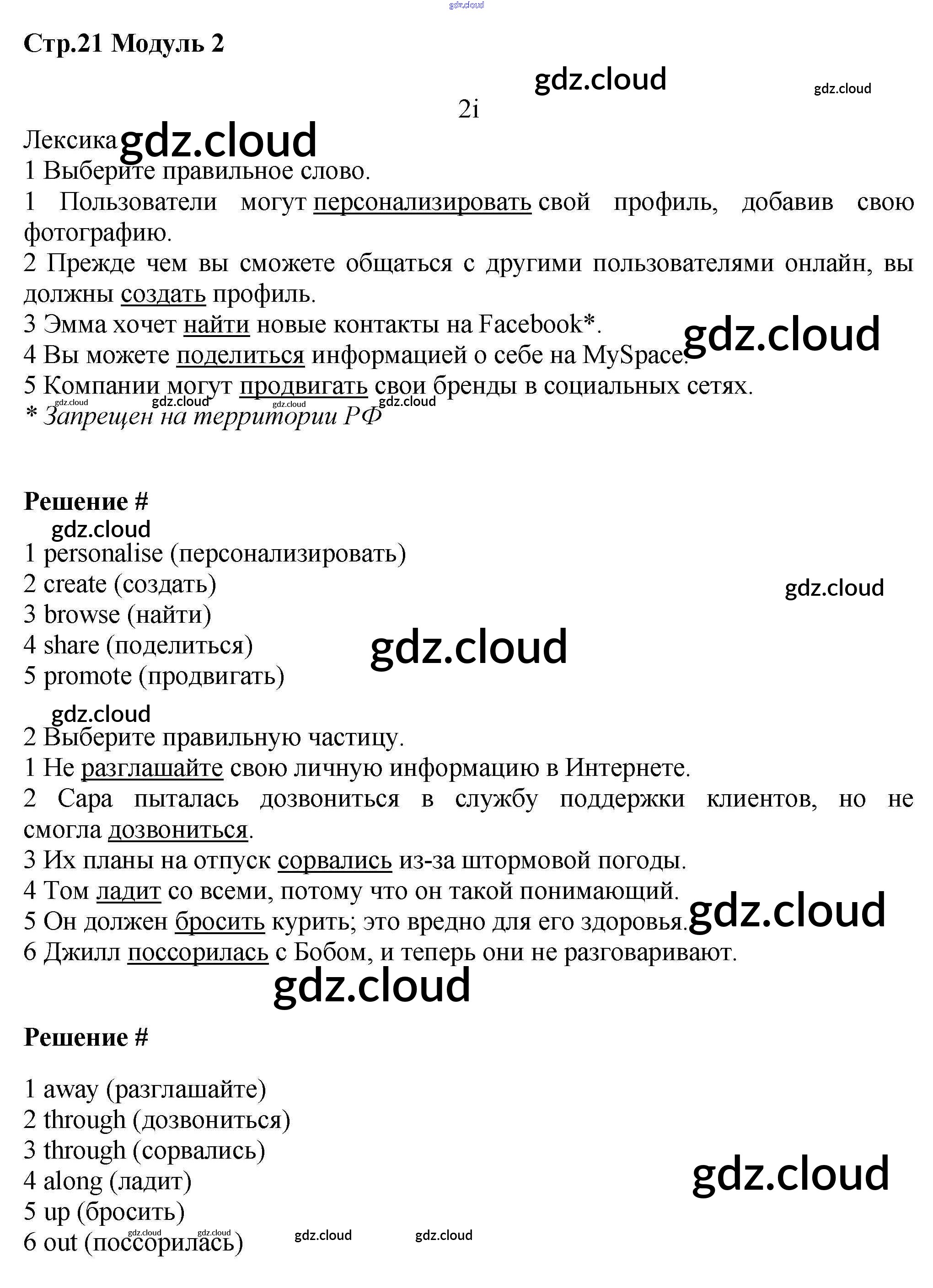 Ответ на задание стр.21 Рабочая тетрадь Английский язык  за 7 (седьмой) класс Баранова, Дули, Эванс, Копылова, Мильруд Starlight Углубленный уровень 2017