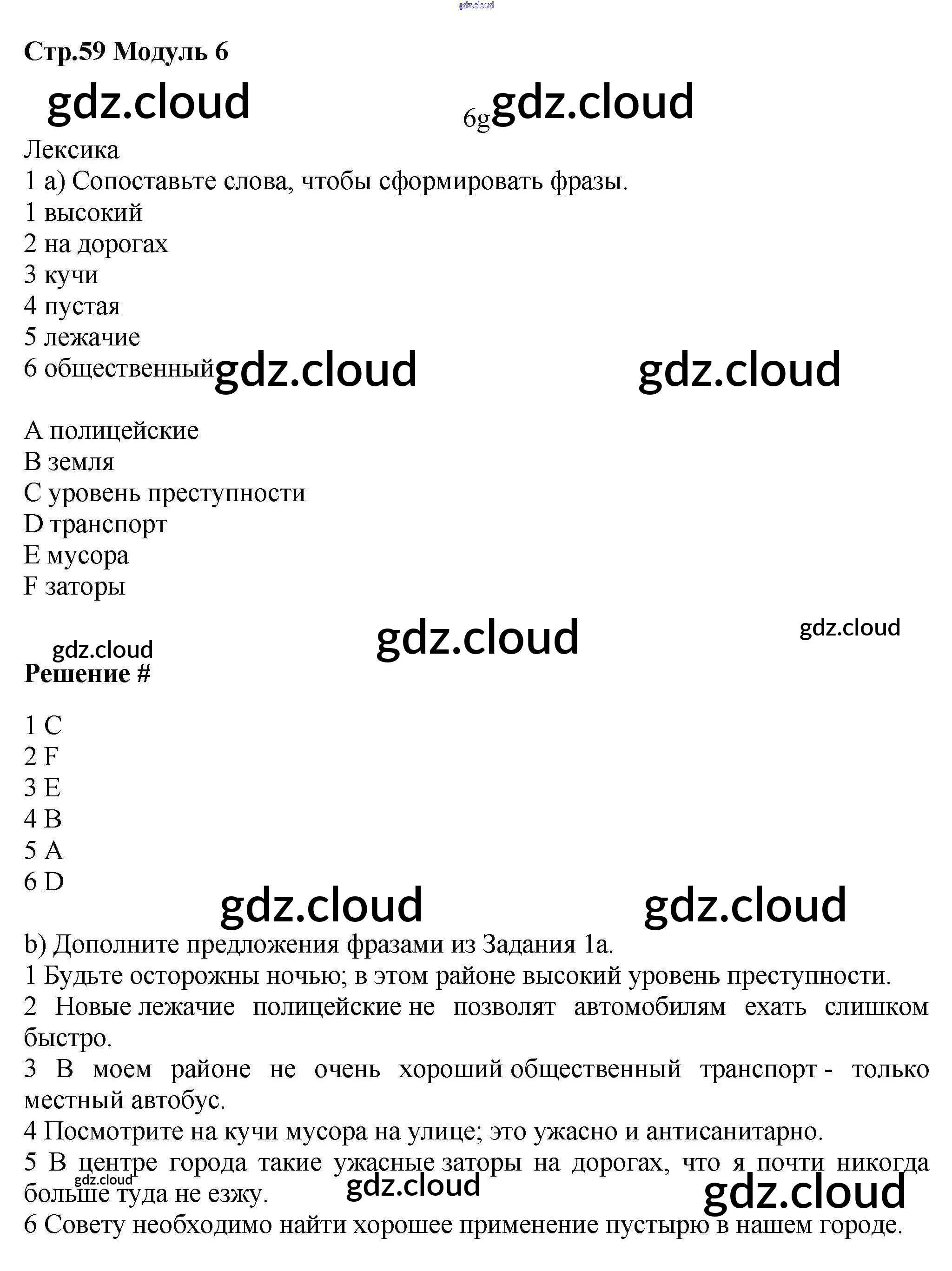 Ответ на задание стр.59 Рабочая тетрадь Английский язык  за 7 (седьмой) класс Баранова, Дули, Эванс, Копылова, Мильруд Starlight Углубленный уровень 2017