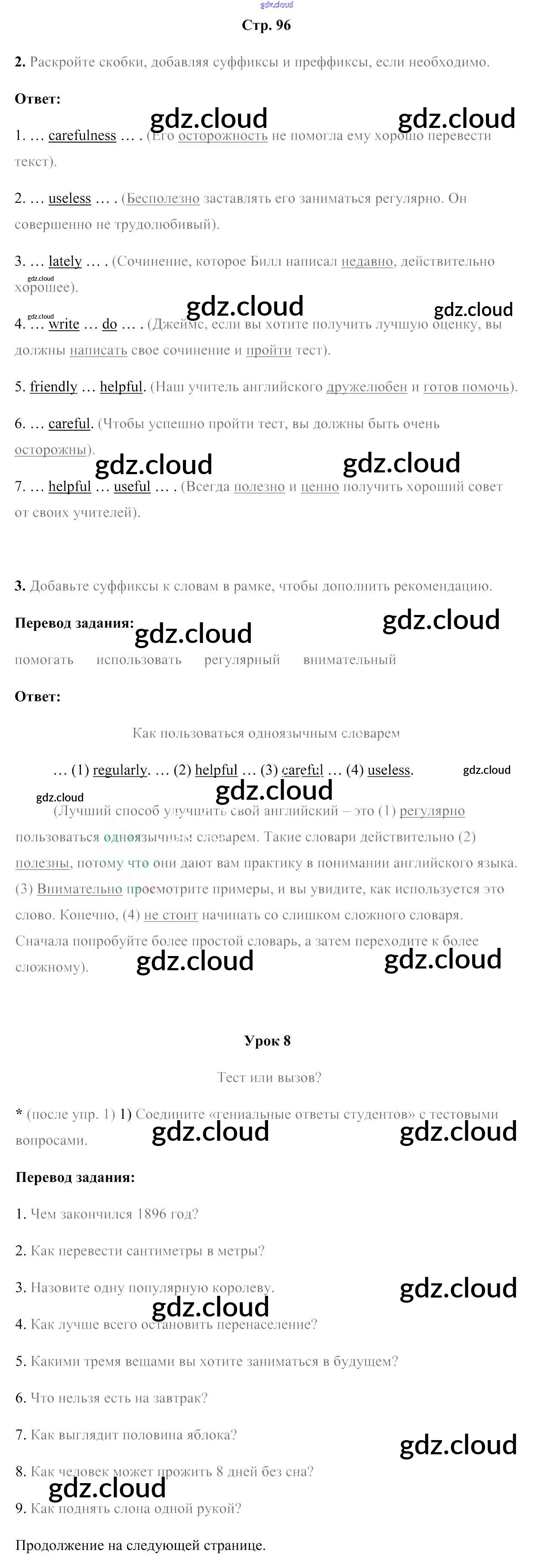 Ответ на задание стр.96 Рабочая тетрадь Английский язык  за 7 (седьмой) класс Юхнель, Наумова, Демченко   2016 Часть 1, 2
