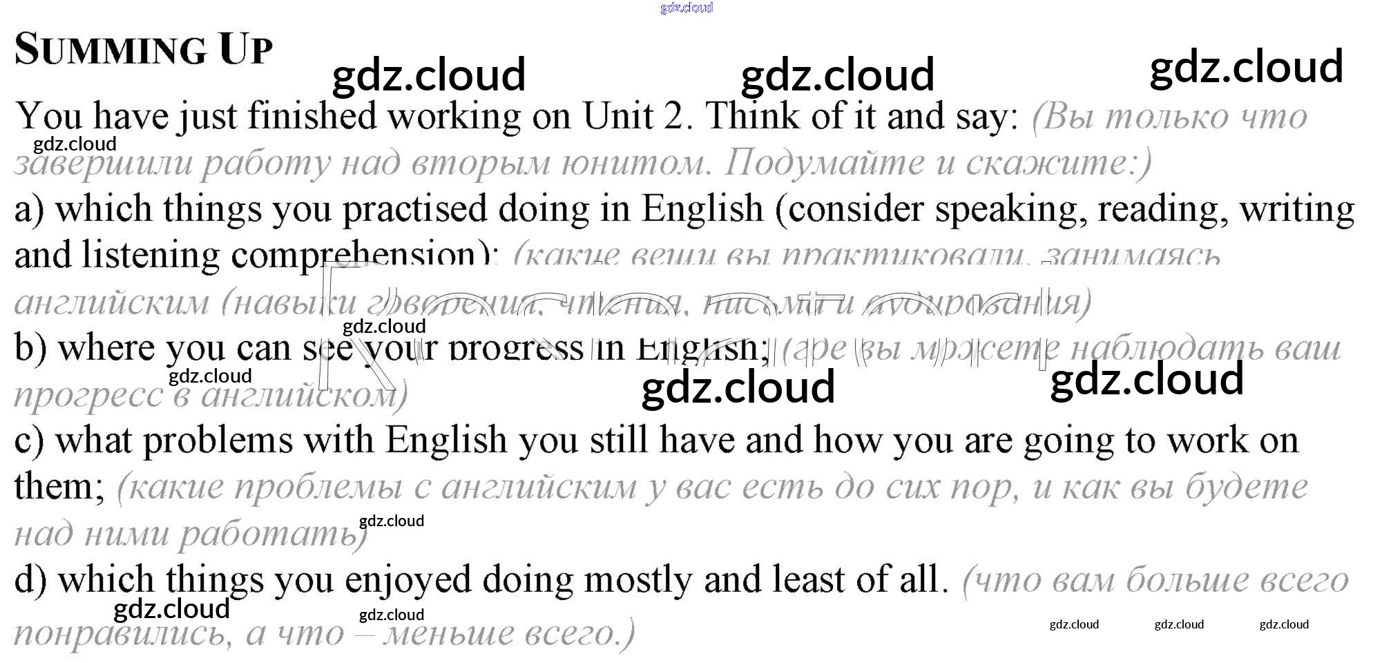 Ответ на задание Summing Up Учебник Английский язык за 8 (восьмой) класс Афанасьева, Михеева Углубленный уровень 2014