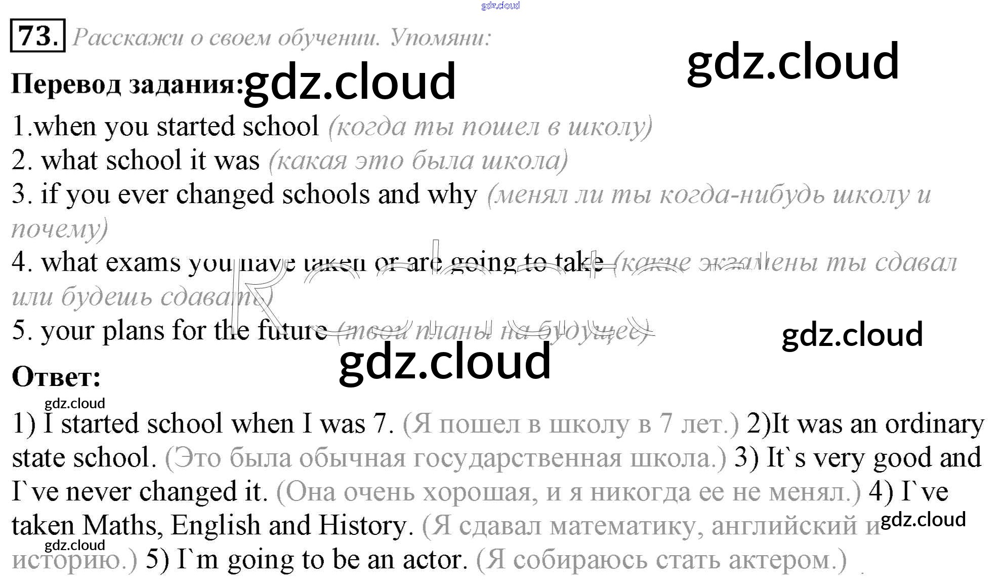 Ответ на задание 73 Учебник Английский язык за 8 (восьмой) класс Афанасьева, Михеева Углубленный уровень 2014 ФГОС онлайн и без номера телефона.