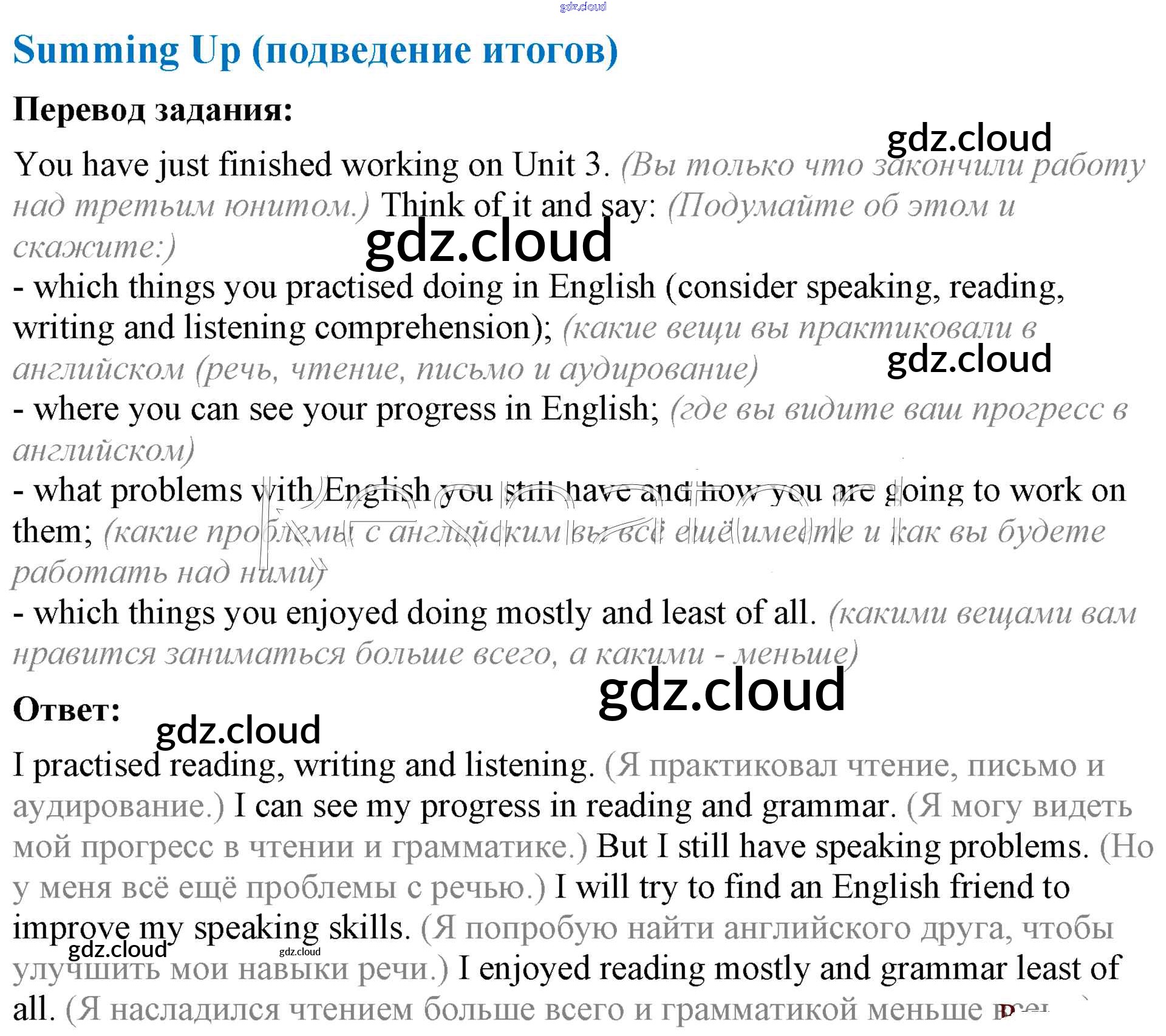 Ответ на задание Summing Up Учебник Английский язык за 8 (восьмой) класс Афанасьева, Михеева Углубленный уровень 2014