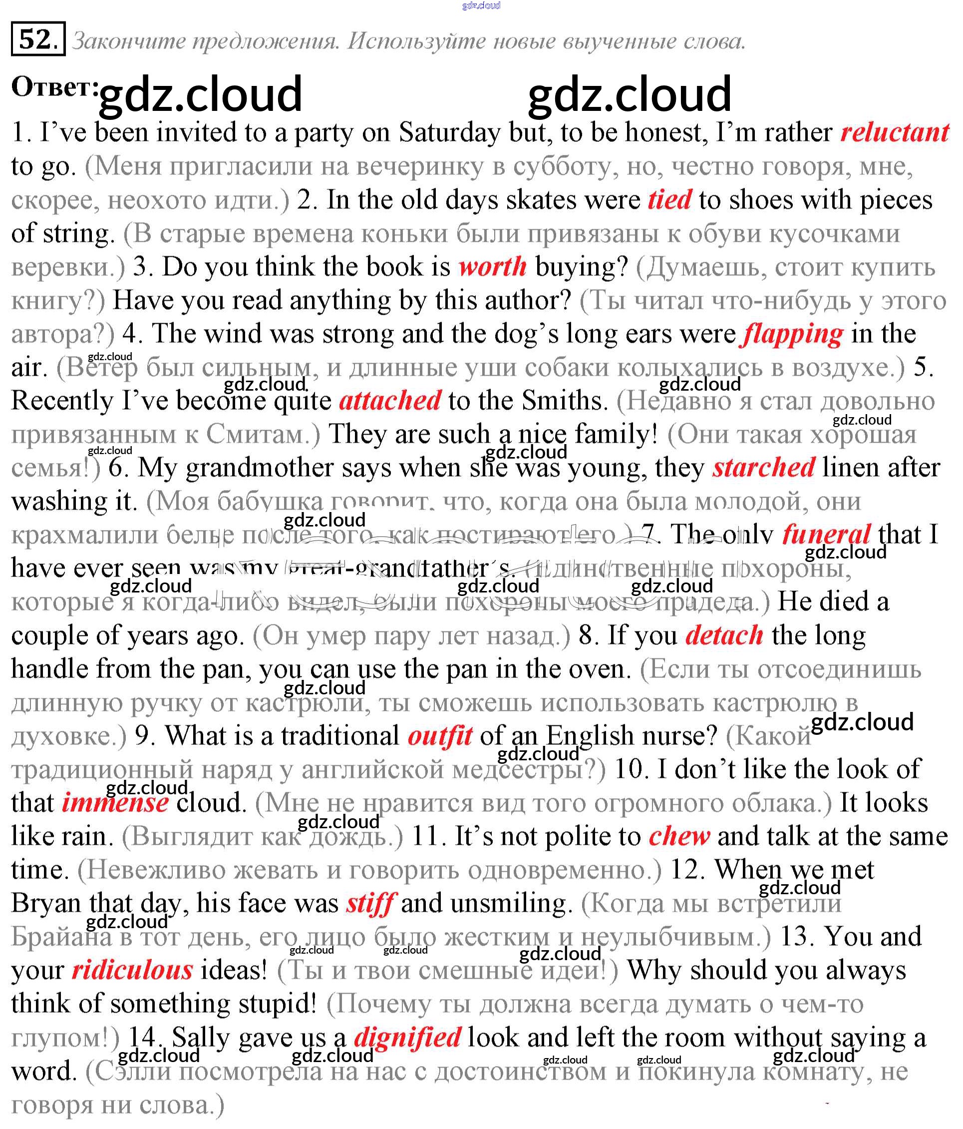 Ответ на задание 52 Учебник Английский язык за 8 (восьмой) класс Афанасьева, Михеева Углубленный уровень 2014 ФГОС онлайн и без номера телефона.