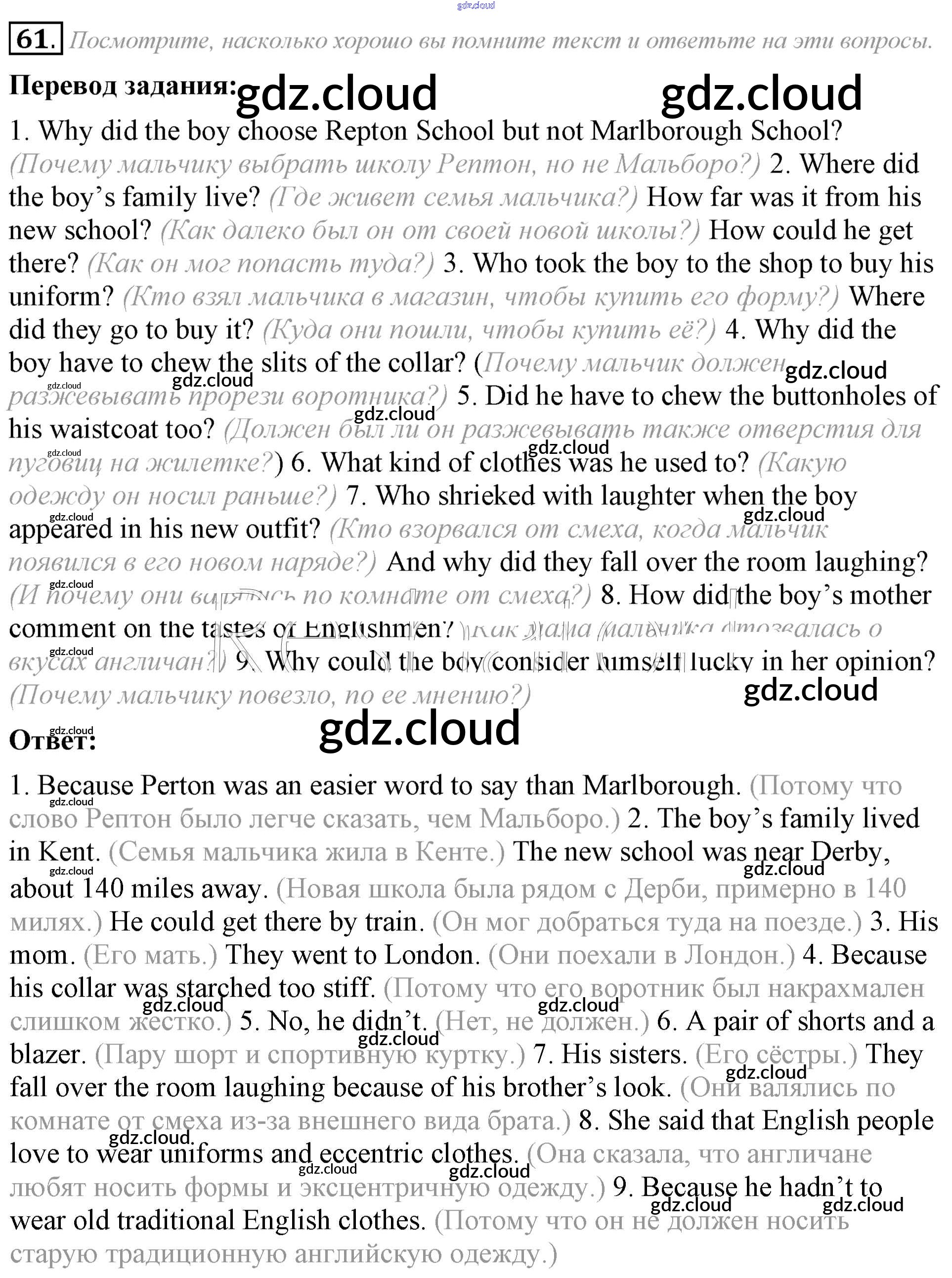 Ответ на задание 61 Учебник Английский язык за 8 (восьмой) класс Афанасьева, Михеева Углубленный уровень 2014 ФГОС онлайн и без номера телефона.