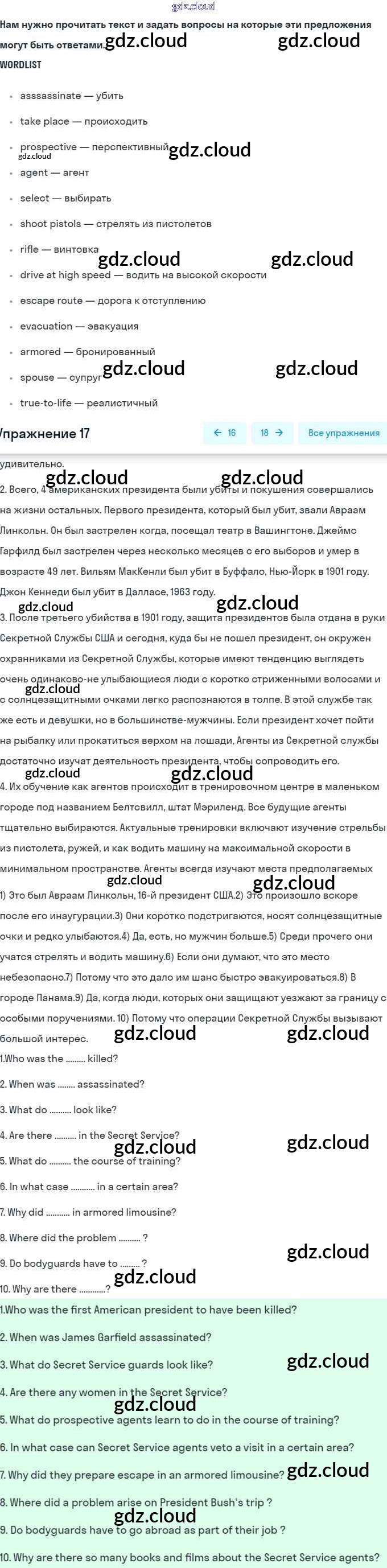 Ответ на задание 17 Учебник Английский язык за 8 (восьмой) класс Афанасьева, Михеева Углубленный уровень 2014