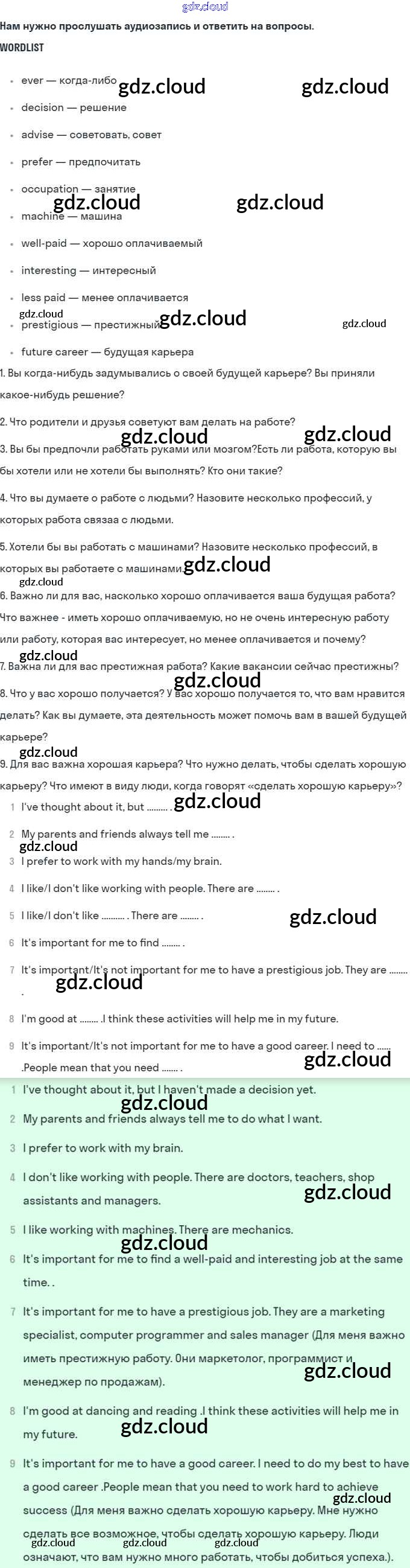 Ответы. Unit 1. Choosing a Career: the World of Jobs по Английскому языку 8 класс Учебник Афанасьева Углубленный уровень Просвещение