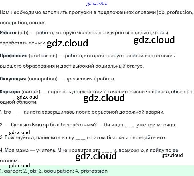Ответы. Unit 1. Choosing a Career: the World of Jobs по Английскому языку 8 класс Учебник Афанасьева Углубленный уровень Просвещение