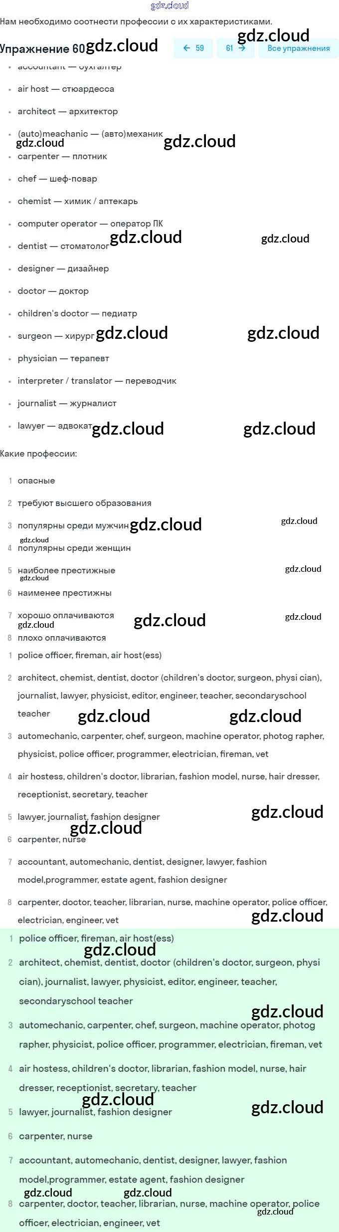 Ответы. Unit 1. Choosing a Career: the World of Jobs по Английскому языку 8 класс Учебник Афанасьева Углубленный уровень Просвещение