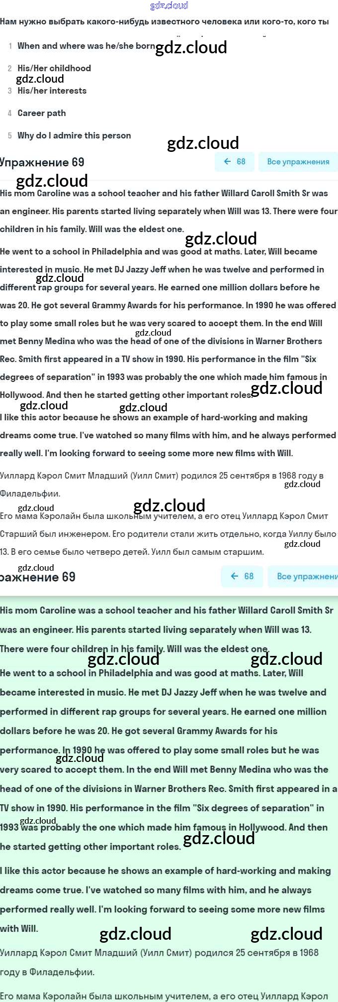 Ответ на задание 69 Учебник Английский язык за 8 (восьмой) класс Афанасьева, Михеева Углубленный уровень 2014