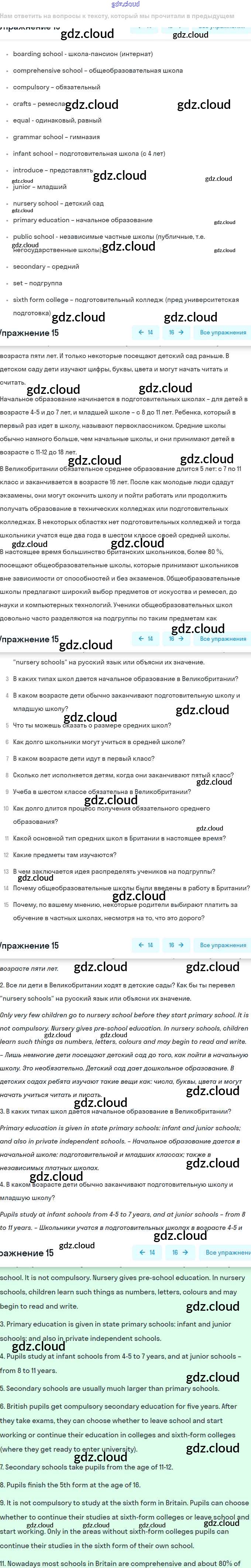 Ответ на задание 15 Учебник Английский язык за 8 (восьмой) класс Афанасьева, Михеева Углубленный уровень 2014
