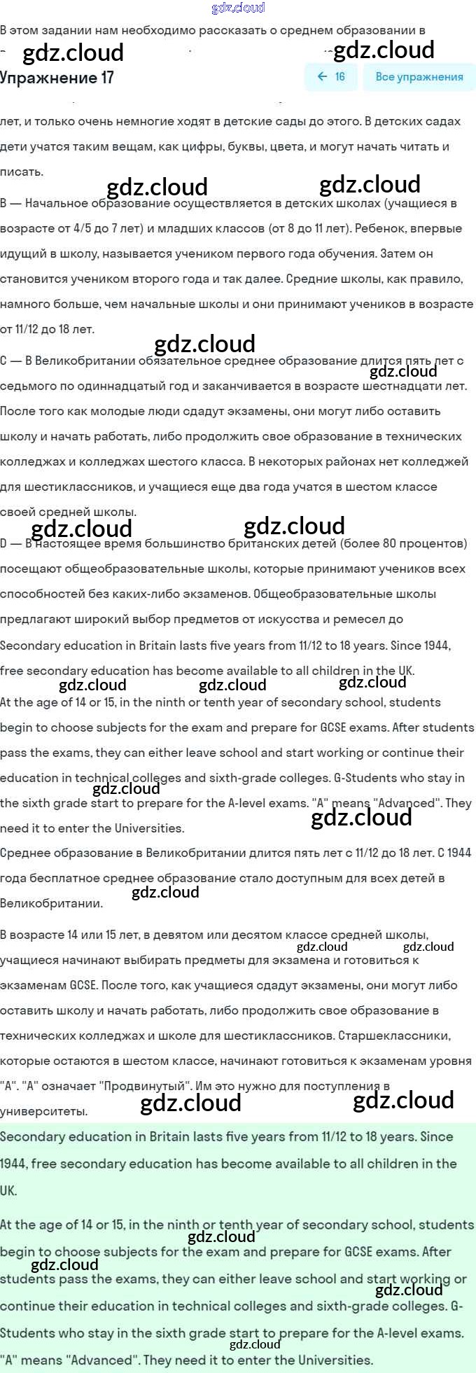 Ответ на задание 17 Учебник Английский язык за 8 (восьмой) класс Афанасьева, Михеева Углубленный уровень 2014