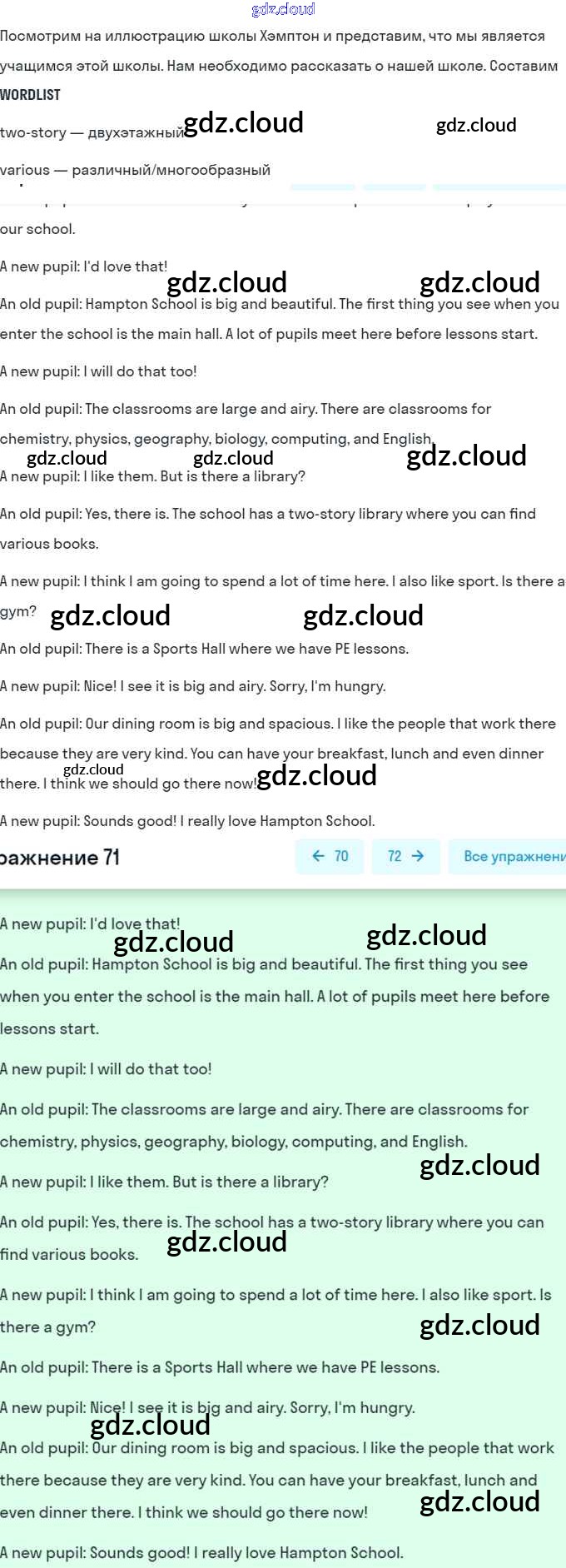 Ответ на задание 71 Учебник Английский язык за 8 (восьмой) класс Афанасьева, Михеева Углубленный уровень 2014