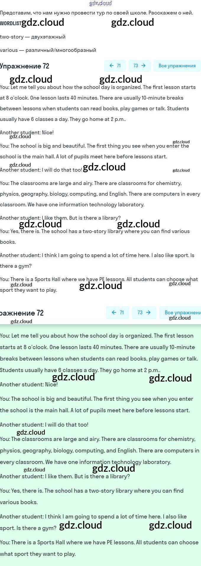 Ответ на задание 72 Учебник Английский язык за 8 (восьмой) класс Афанасьева, Михеева Углубленный уровень 2014