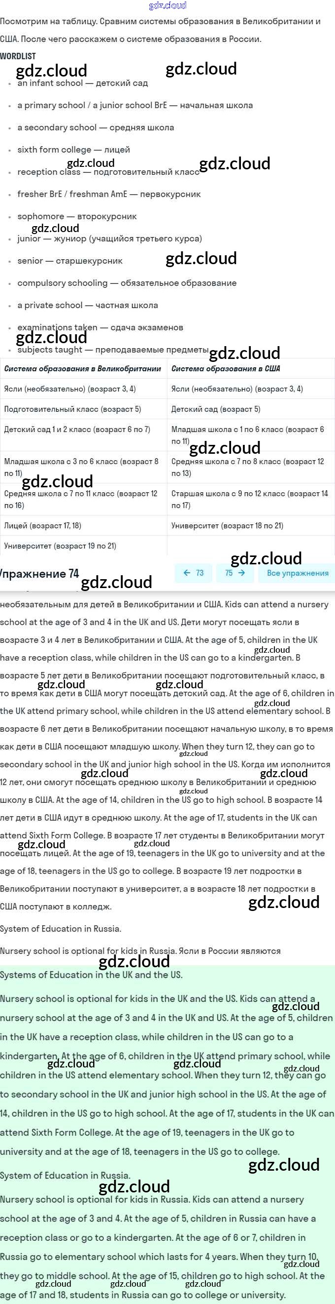 Ответ на задание 74 Учебник Английский язык за 8 (восьмой) класс Афанасьева, Михеева Углубленный уровень 2014